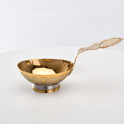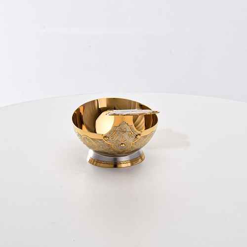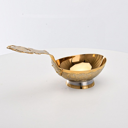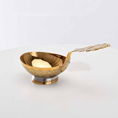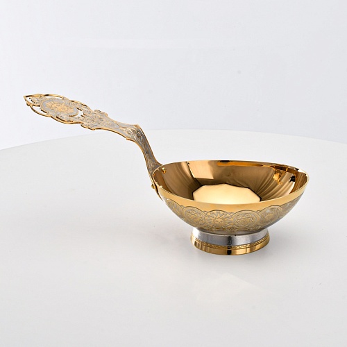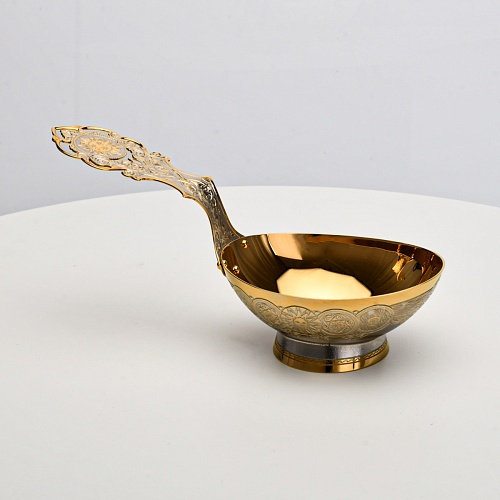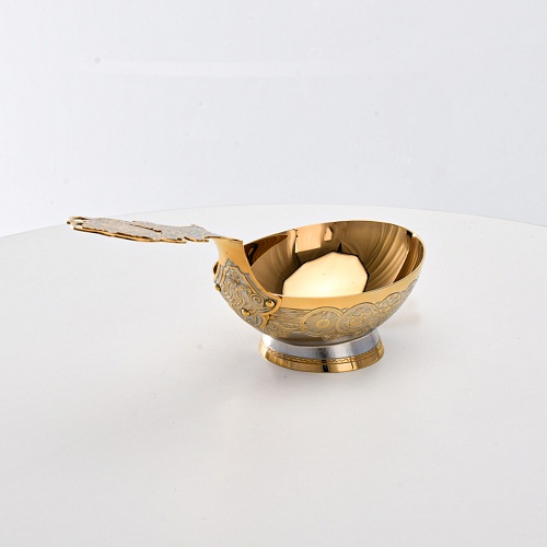 Несмотря на то, что братина выполнена из желтого металла с долговечным золотым покрытием, она требует соблюдения правил по уходу. Братину нельзя мыть в посудомоечной машине. Не следует подвергать изделие воздействию агрессивной среды (кислые жидкости, жесткая вода, абразивные материалы) и резким температурным перепадам. Мойте изделие по отдельности в теплой воде, не применяя бытовую химию и грубые губки. Мокрую посуду не стоит оставлять сохнуть, ее надо аккуратно вытереть мягкой тканью (лучше из натуральных материалов).