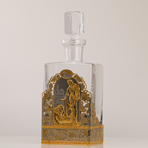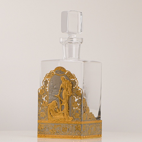 Авторский графин для вина – роскошное произведение искусства из стекла и металла. Все этапы изготовления изделия выполнены вручную нашими художниками, мастерами-оружейниками, граверами, гальваниками.