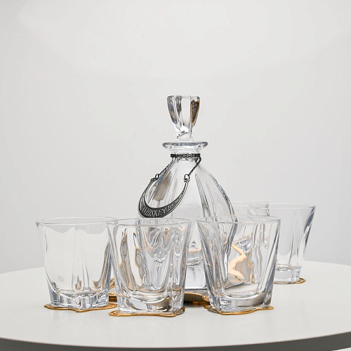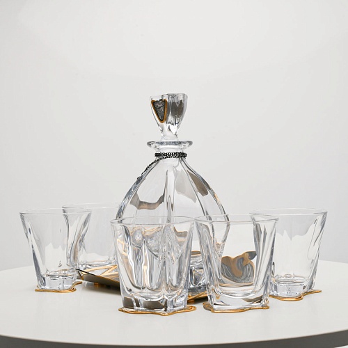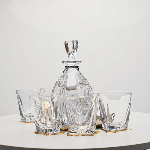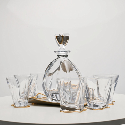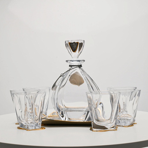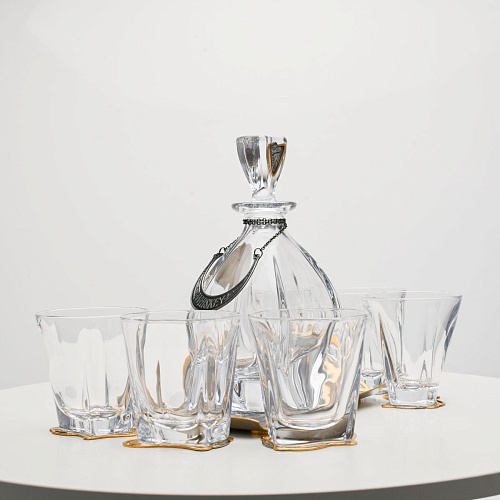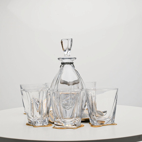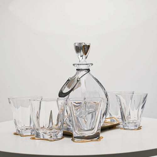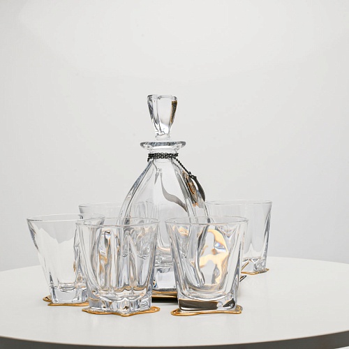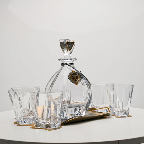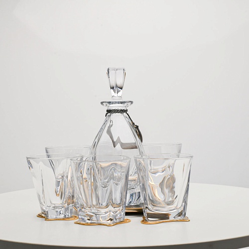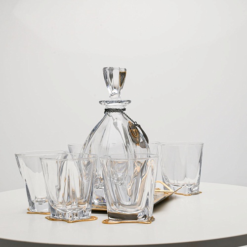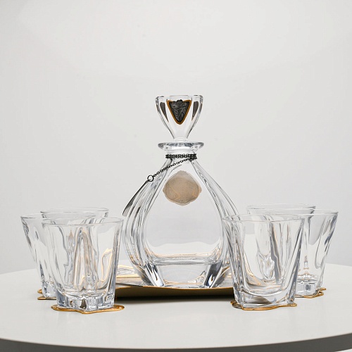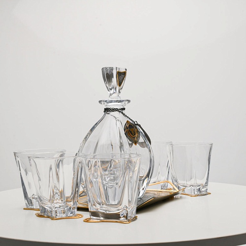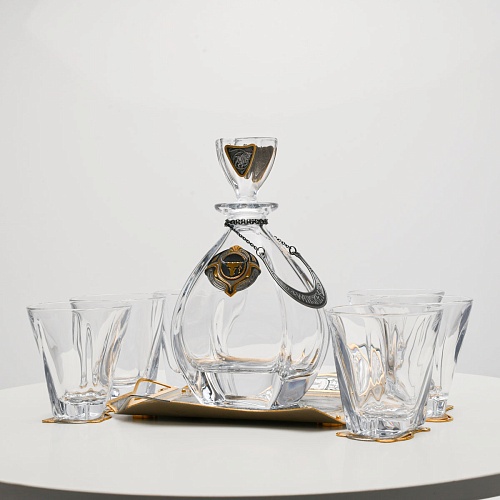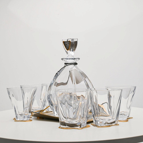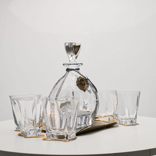 Несмотря на то, что весь набор выполнен из качественного стекла и желтого металла с долговечным золотым покрытием, он требует соблюдения правил по уходу. Бокалы и штоф нельзя мыть в посудомоечной машине. Не следует подвергать их длительному воздействию агрессивной среды (кислые жидкости, жесткая вода, абразивные материалы) и резким температурным перепадам. Мойте бокалы и штоф по отдельности в теплой воде, не применяя бытовую химию и грубые губки. Мокрую посуду не стоит оставлять сохнуть, ее надо аккуратно вытереть мягкой тканью (лучше из натуральных материалов).
