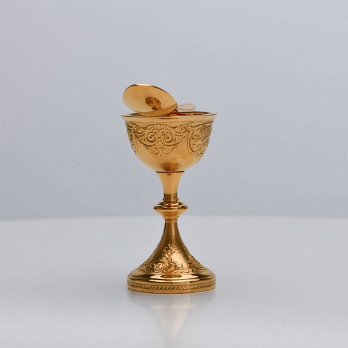 Пашотница имеет форму небольшой рюмочки на ножке. Основание и боковые стороны пашотницы и ложечки украшены растительным орнаментом и логотипом заказчика "ЧЕПФА".