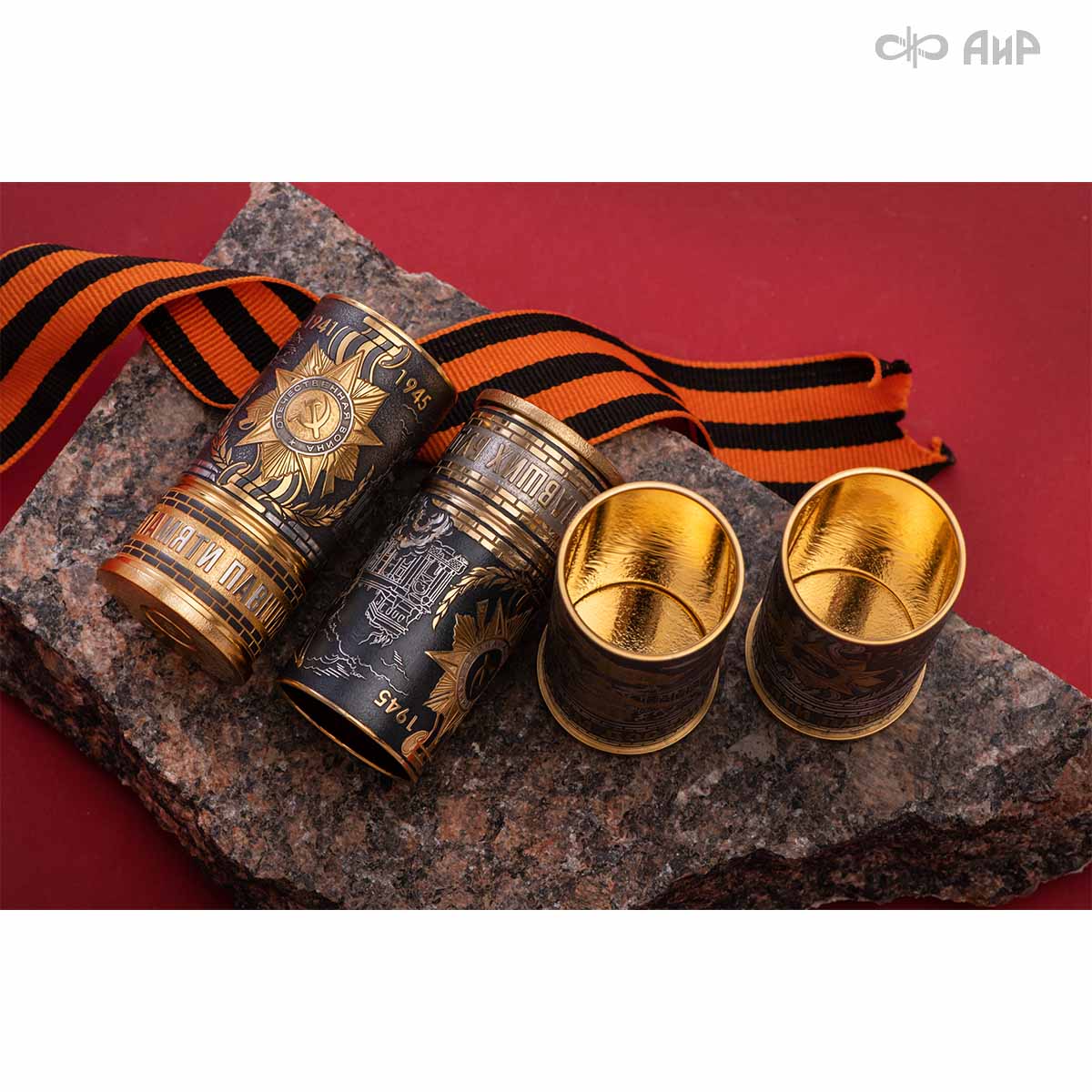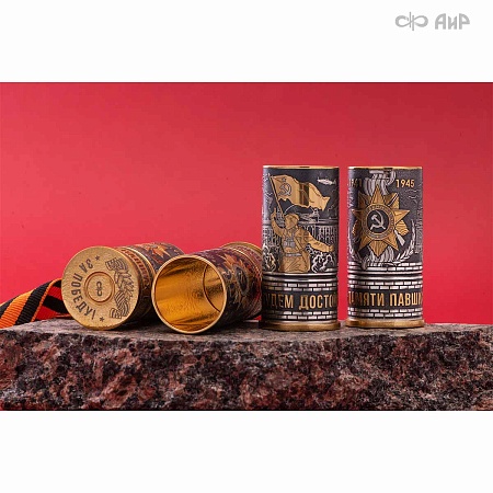 Стопка-гильза "Памяти павших" предназначена для водки, настойки или домашней наливки. Центральное место на стопке занимает орден Великой Отечественной Войны. Стопка украшена лавровыми ветвями, датами 1941-1945, которые высечены в памяти советского народа. На кирпичной кладке золотыми буквами горит вечным огнем фраза "ПАМЯТИ ПАВШИХ", в память о всех погибших и отдавших свои жизни во имя будущих поколений.