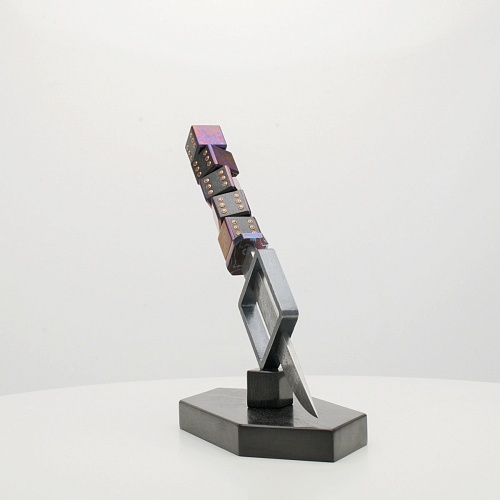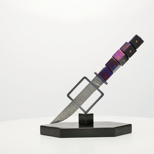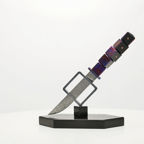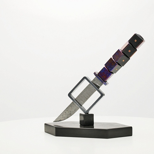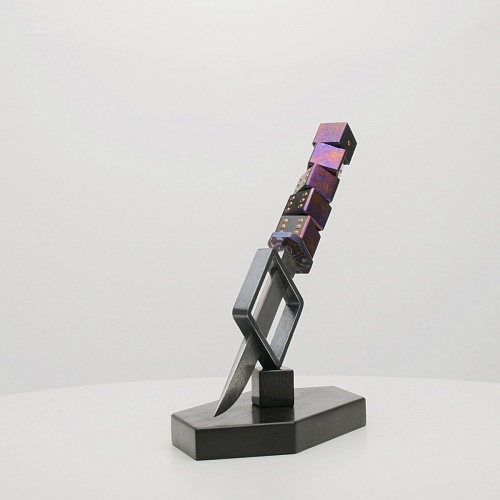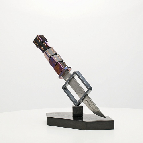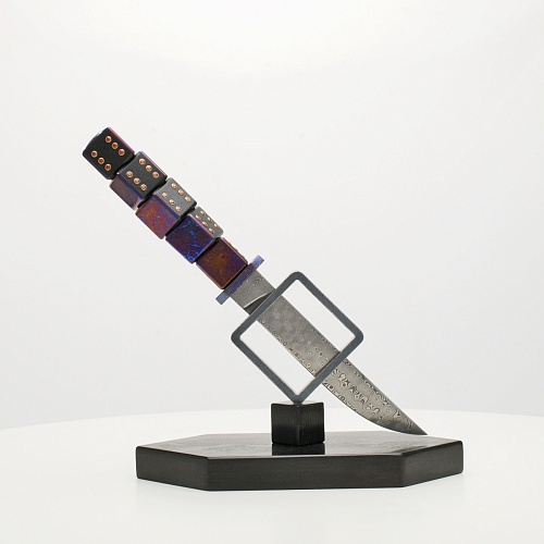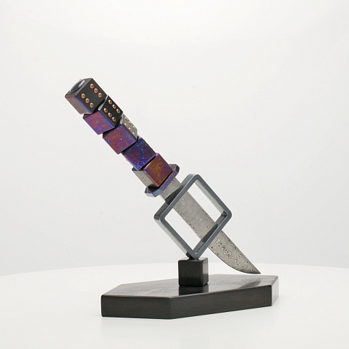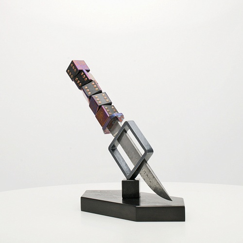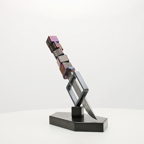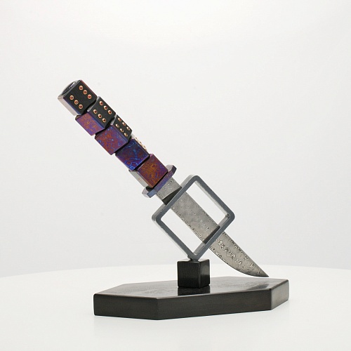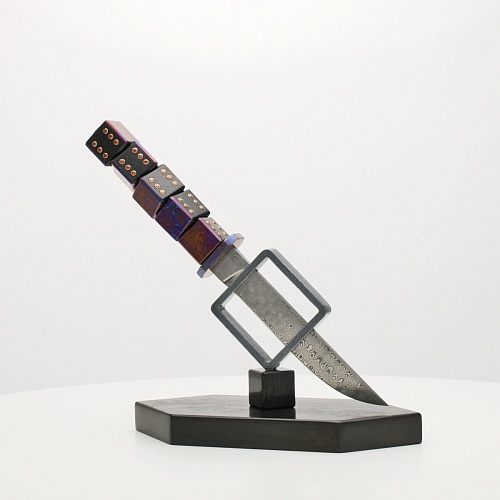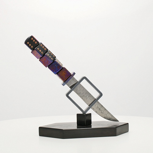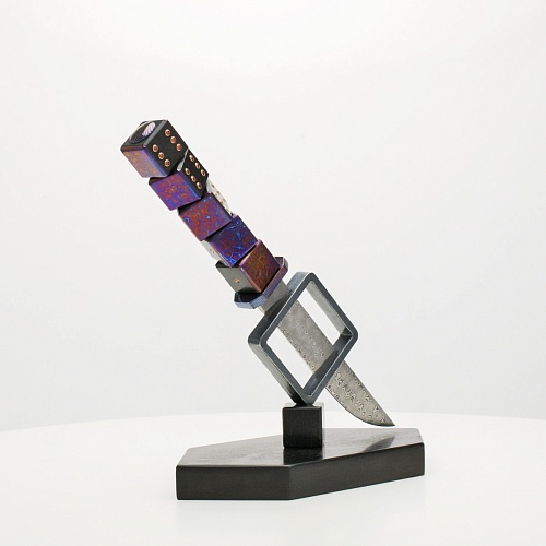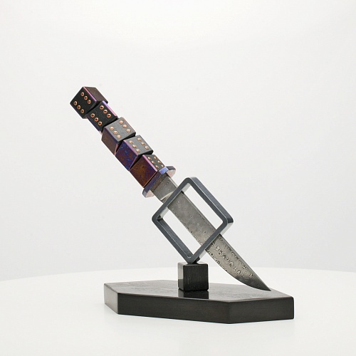 Авторский нож располагается на специальной подставке шестигранной формы, напоминающей кубик удачи. Счастливое число «6» будет гарантировать положительное взаимодействие с фортуной. Автор изначально, задумывая композицию, закладывал в нее настрой на удачу и исполнение самых смелых ожиданий. Харизматичному лидеру и успешному бизнесмену клинок поможет просчитать все ходы наперед и выиграть, несмотря на риск и запредельность мечты. Госпожа Удача непременно окажется на стороне владельца композиции, поможет преодолеть все препятствия и создать свою стратегию.