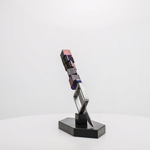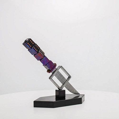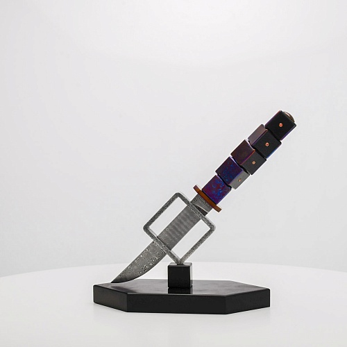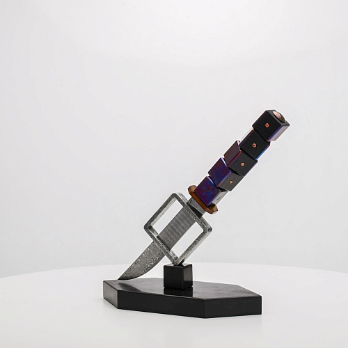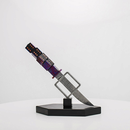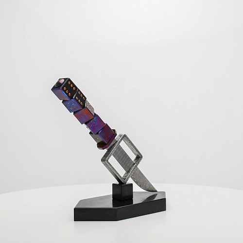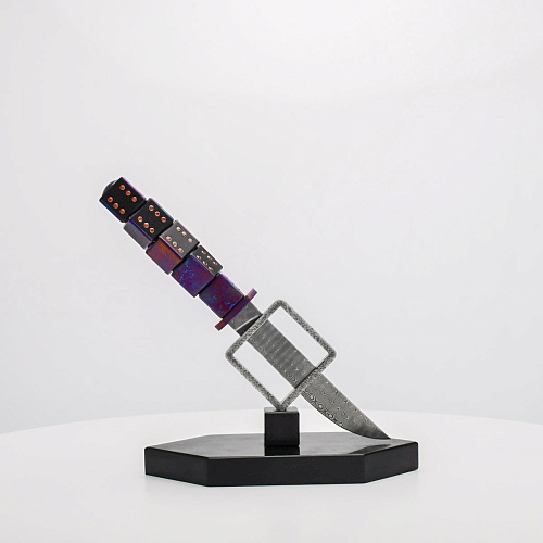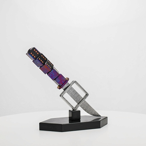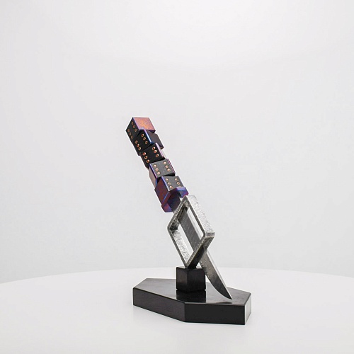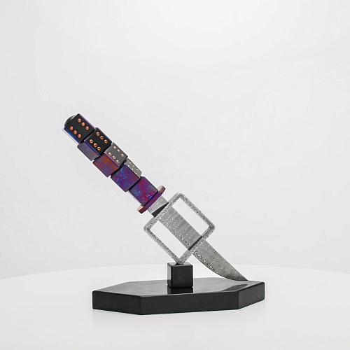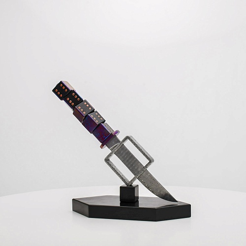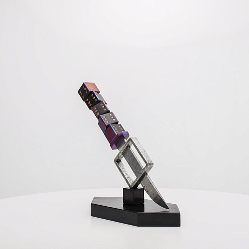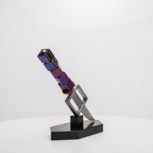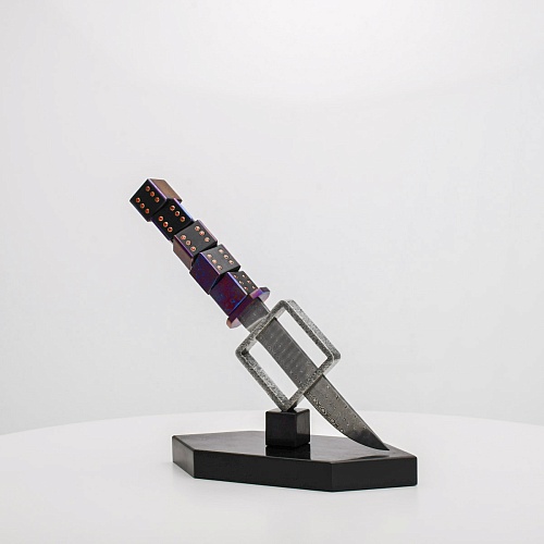Авторский нож располагается на специальной подставке шестигранной формы, напоминающей кубик удачи. Счастливое число «6» будет гарантировать положительное взаимодействие с фортуной. Автор изначально, задумывая композицию, закладывал в нее настрой на удачу и исполнение самых смелых ожиданий. Харизматичному лидеру и успешному бизнесмену клинок поможет просчитать все ходы наперед и выиграть, несмотря на риск и запредельность мечты. Госпожа Удача непременно окажется на стороне владельца композиции, поможет преодолеть все препятствия и создать свою стратегию.
