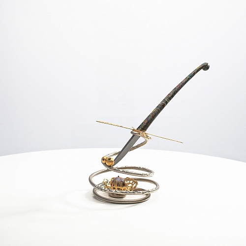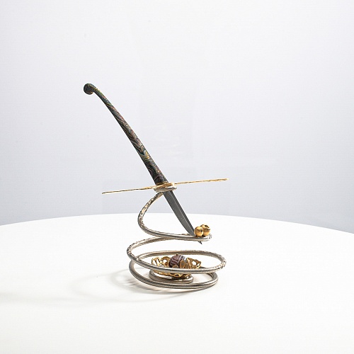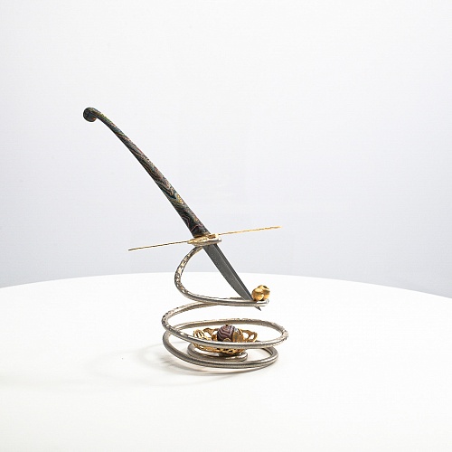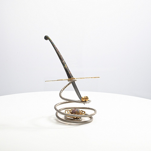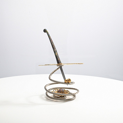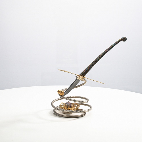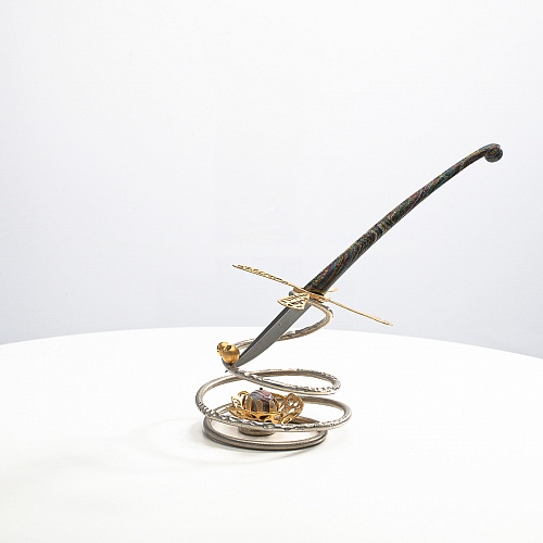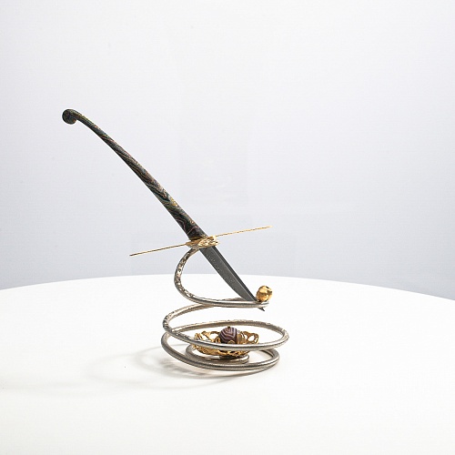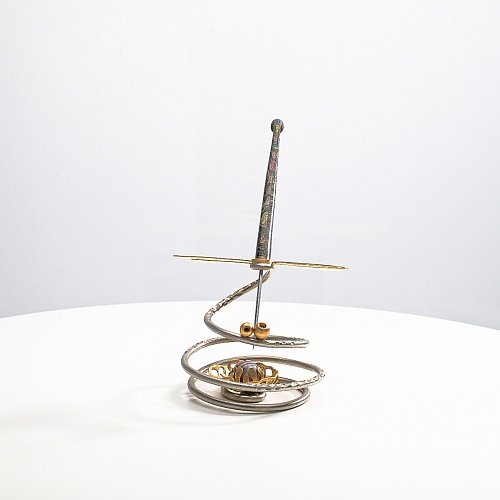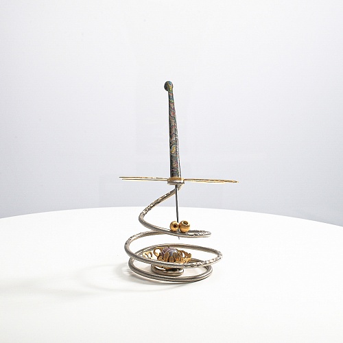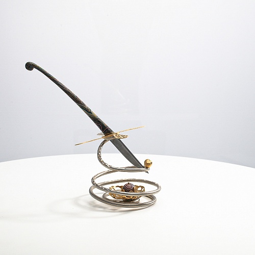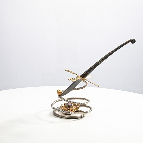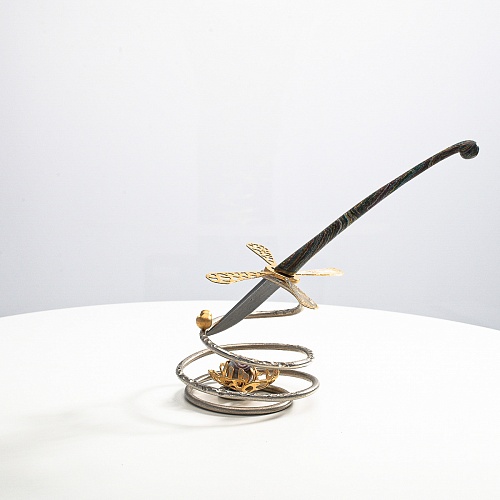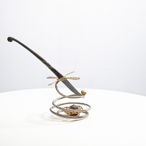 Тонкий и изящный офисный нож на подставке в виде спирали с драгоценной сердцевиной станет украшением рабочего кабинета в офисе или доме, а также займет свое место в коллекции диковинных вещей будущего владельца, который ценит неординарные предметы интерьера. Несмотря на свою утонченность, нож является функциональным и остро заточенным инструментом - с его помощью можно вскрывать конверты, резать бумагу и продукты, затачивать карандаши и т.п.