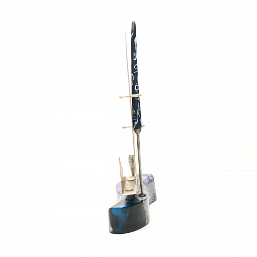 Настольная композиция "Вечный странник" - красивый и функциональный предмет, способный украсить рабочий кабинет в офисе или дома. В композиции идеально сочетаются материалы, цвета, назначение и эстетика. Помимо офисного ножа, предмет послужит подставкой для ручки и визиток.