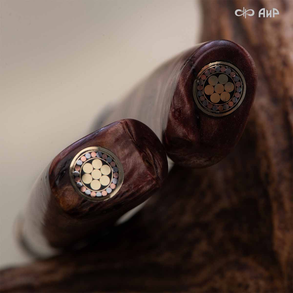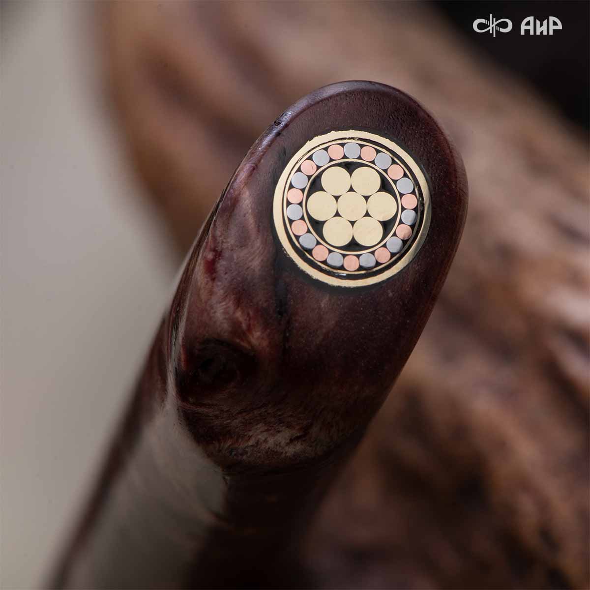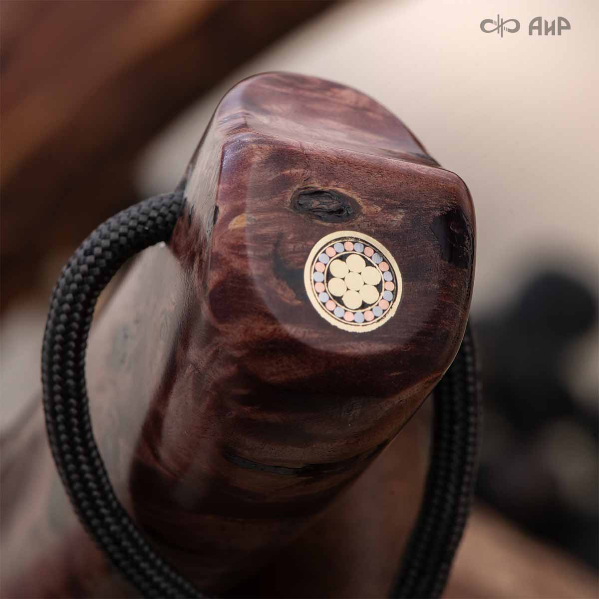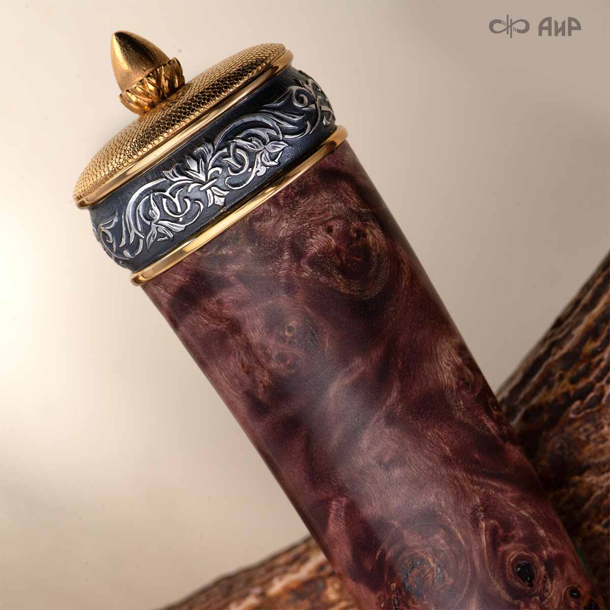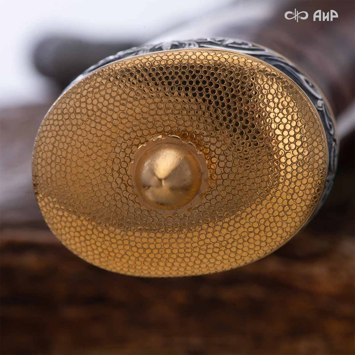 Оружейники и художники Компании «АиР», авторы современной версии хиршфангера, создали изделие в духе европейских традиций, с применением техники златоустовской гравюры на металле. Свое название – «Великаны леса» охотничий гарнитур получил по двум причинам: 1) на щитке хиршфангера изображен гордый лось в ореоле из орнамента – как главный трофей лесной охоты, 2) металлические детали ножен хиршфангера и Финского ножа украшены природными пейзажами с лосями.