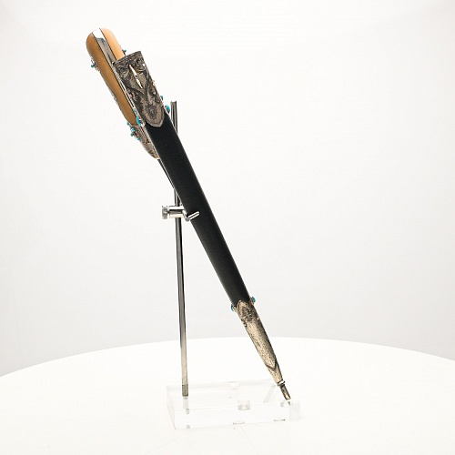 Мастерами был создан клинок из дамасской стали Zladinox с нанесением орнамента из цветов с помощью серебряной насечки. «Пеш-Кабз» выполнен в виде длинного изогнутого ножа, он достаточно широк у рукояти, а к концу постепенно сужается. Рукоятка украшена самшитом и серебром, она целиком выступает из ножен.