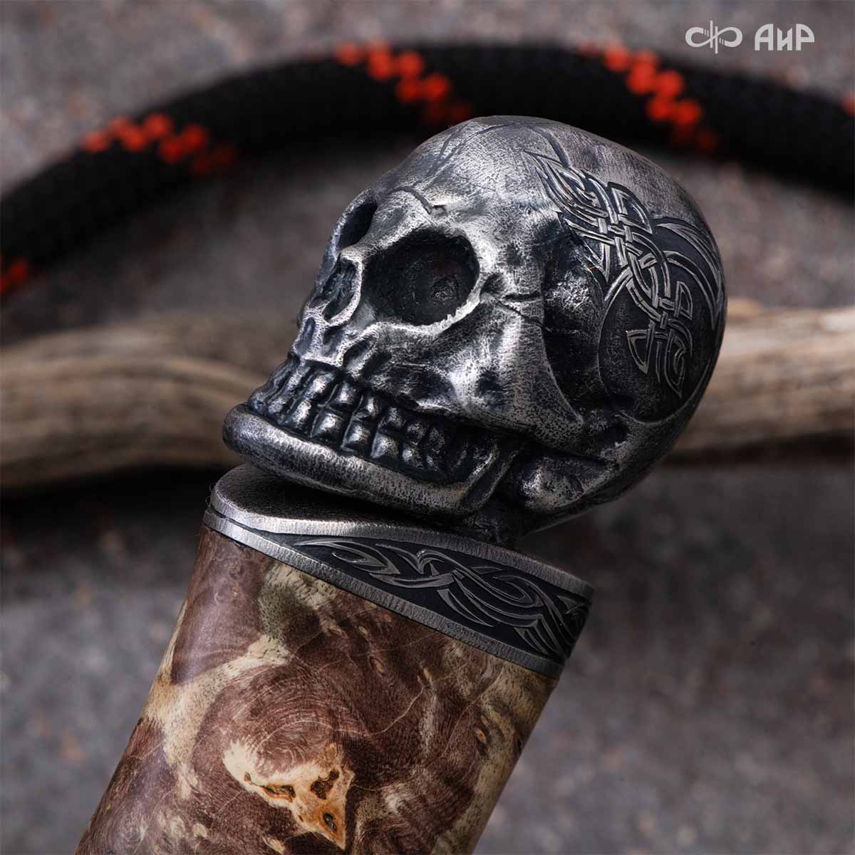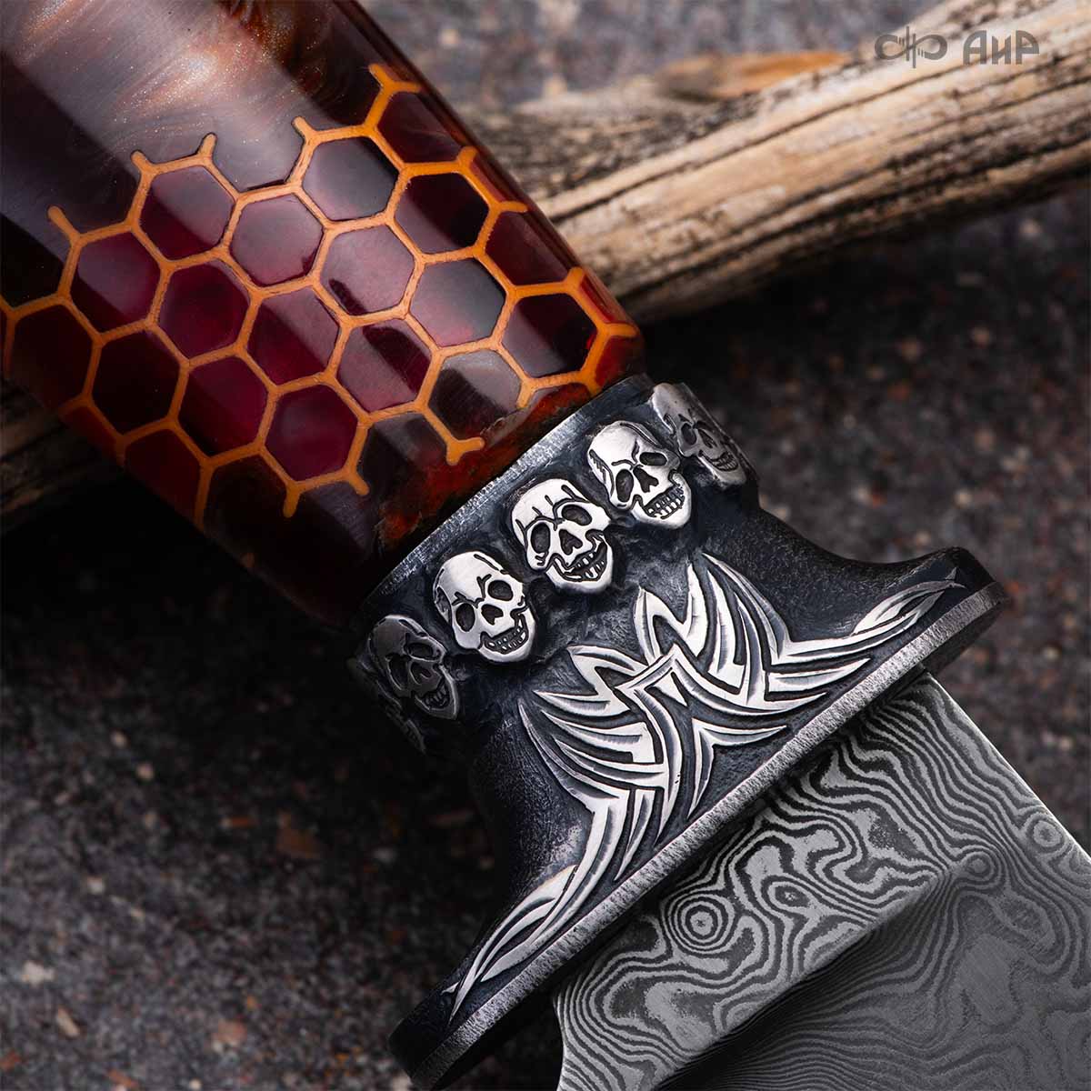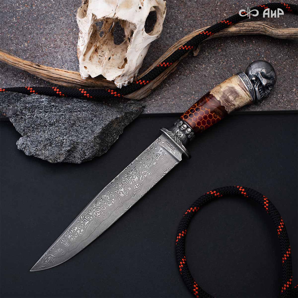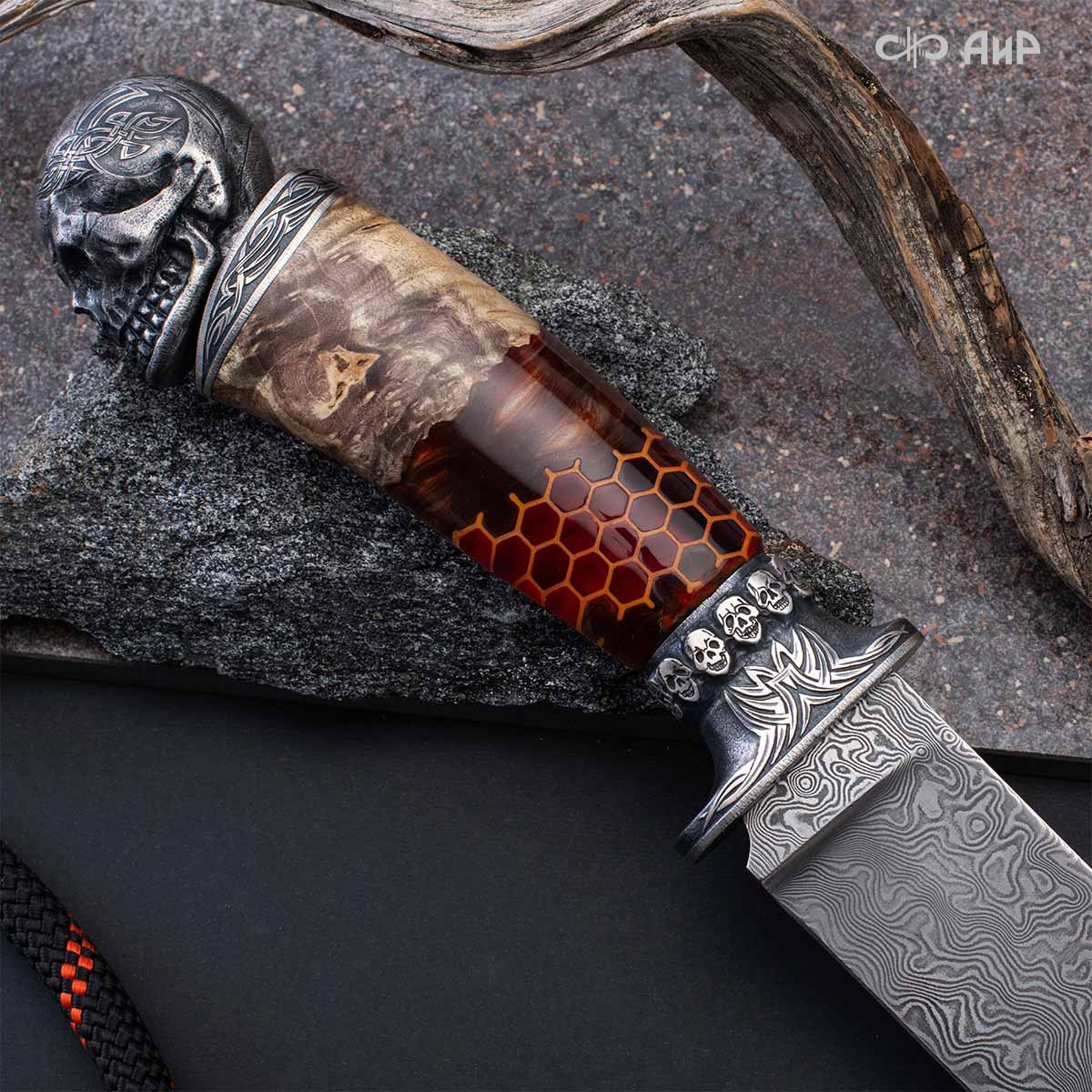Авторский нож с брутальным клинком из дамасской стали ZLADINOX ZDI-1016, рукоятью из композита с сотами и харизматичным навершием наверняка высоко оценят люди, понимающие истинную символику "мертвой головы". Кастомная заточка.