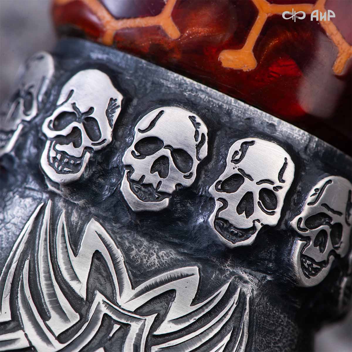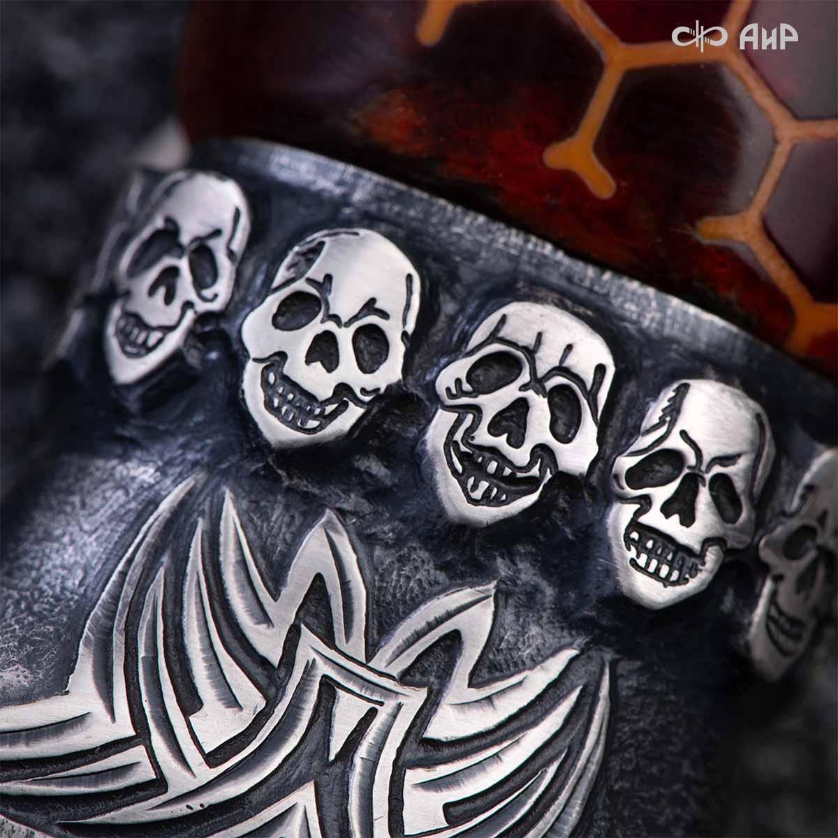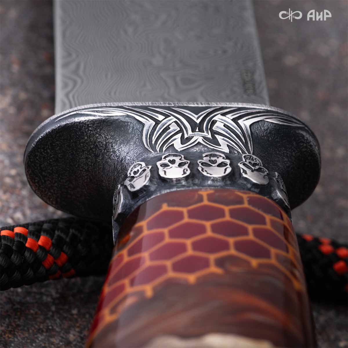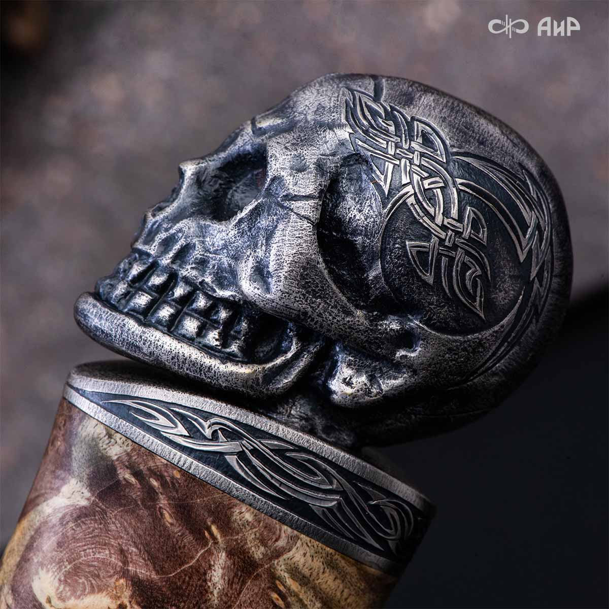 Авторский нож с брутальным клинком из дамасской стали ZLADINOX ZDI-1016, рукоятью из композита с сотами и харизматичным навершием наверняка высоко оценят люди, понимающие истинную символику "мертвой головы". Кастомная заточка.