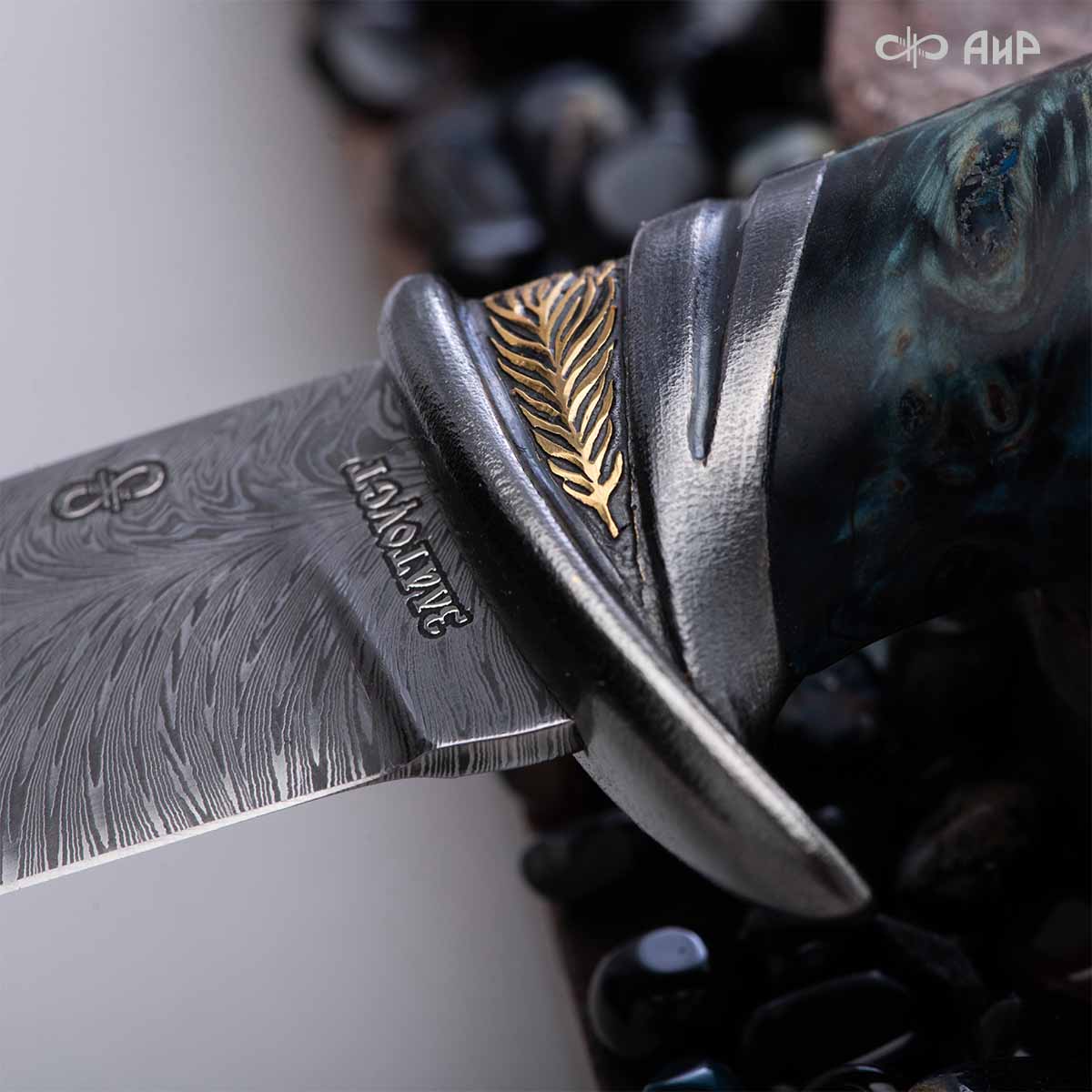 •  Авторский нож Чернокрылый павлин, авторские ножны № 39239 - мастера Златоуста