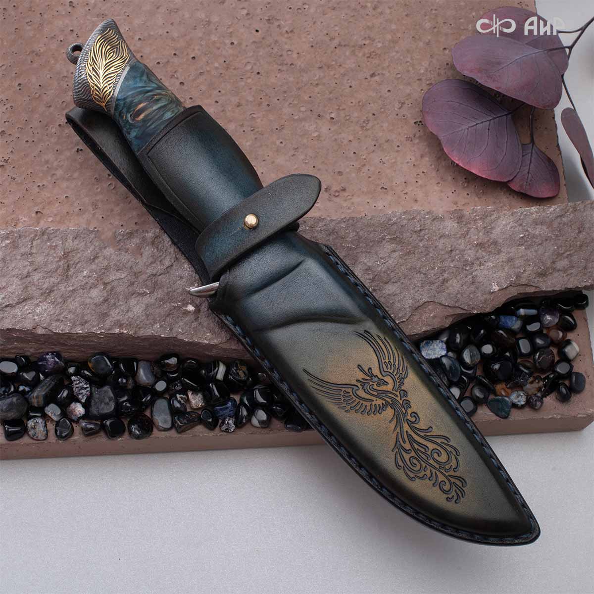 • Авторский нож Чернокрылый павлин, авторские ножны № 39239