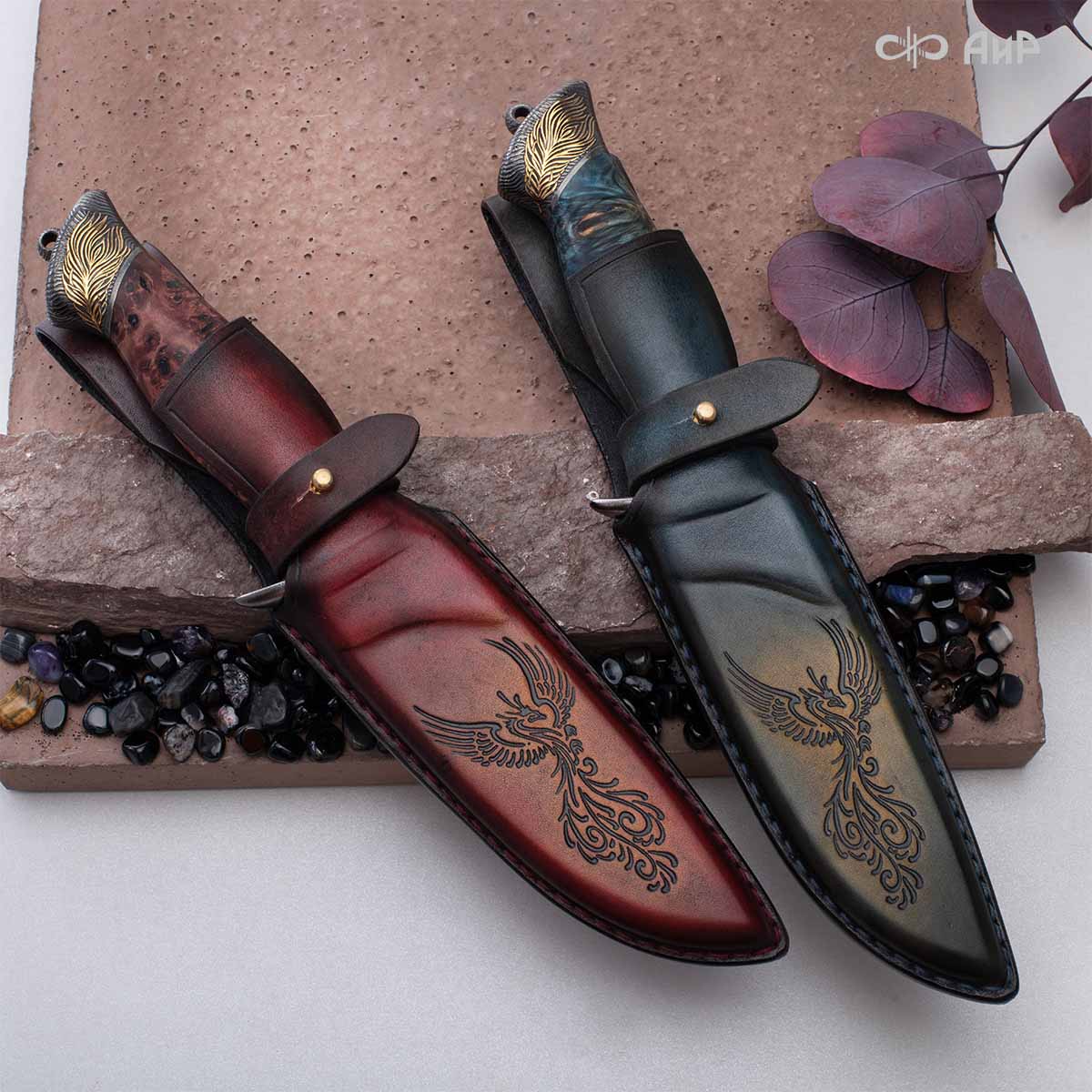 • авторские кожаные ножны с тиснением