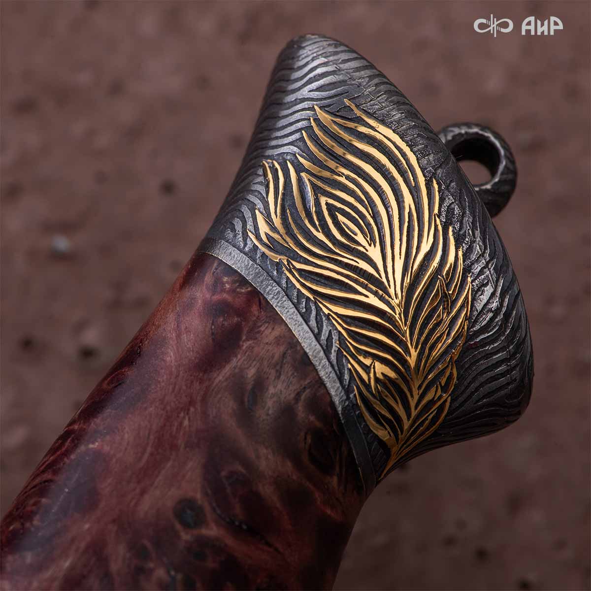 •  Авторский нож Чернокрылый павлин, авторские ножны № 39240 - мастера Златоуста
