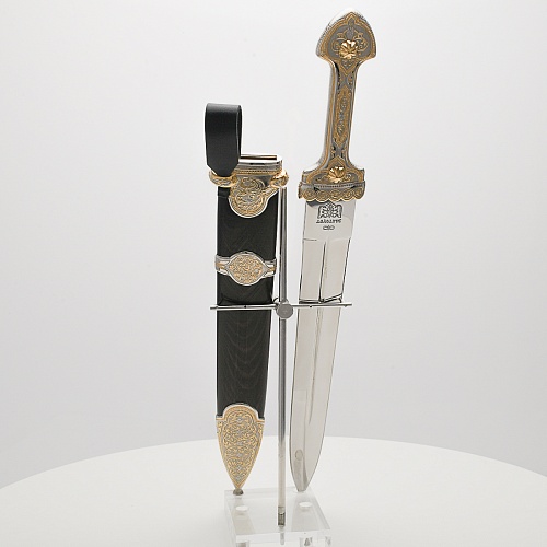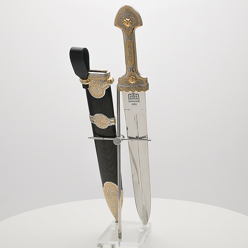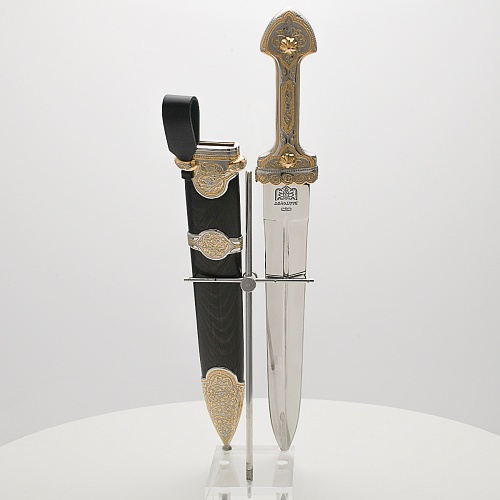 Мастера нашего предприятия изготавливают кинжалы кавказского типа, украшая их в художественном стиле златоустовской гравюры на стали. Клинок кинжала традиционно выполняется из дамасской стали или из нержавеющей стали. Художники украшают клинок, рукоять и ножны каждого кинжала уникальным орнаментом, который никогда не повторяется. За счет этой особенности исполнения изделия владелец украшенного оружия получает эксклюзивный кинжал ручной работы.