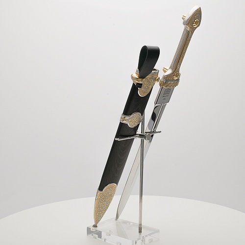Для кавказского кинжала наши мастера изготавливают комбинированные ножны двух видов, оснащенных металлическим прибором. 1) Заготовка для ножен вырезается из граба, реже из макасара; 2) Заготовка для ножен вырезается из бука, обтягивается натуральной телячьей кожей черного цвета. Устье и наконечник выполняются из латуни, из мельхиора, реже из серебра. Устье с наконечником богато украшаются кавказским, растительным орнаментом или изображениями батальных сцен, клинков и военных атрибутов. Все металлические элементы кинжала и ножен покрываются золотом, серебром или родием высшей пробы в зависимости от авторского замысла.