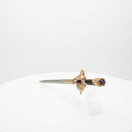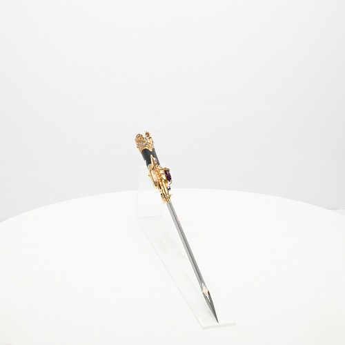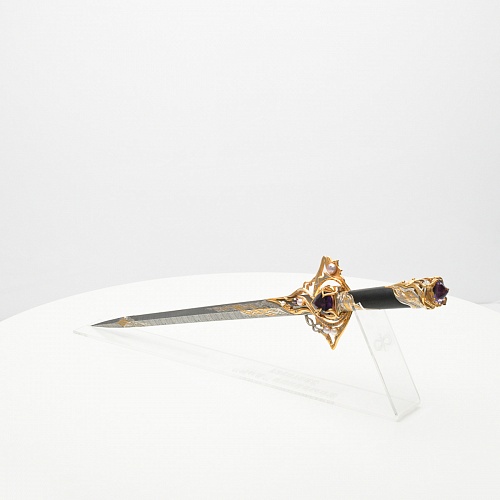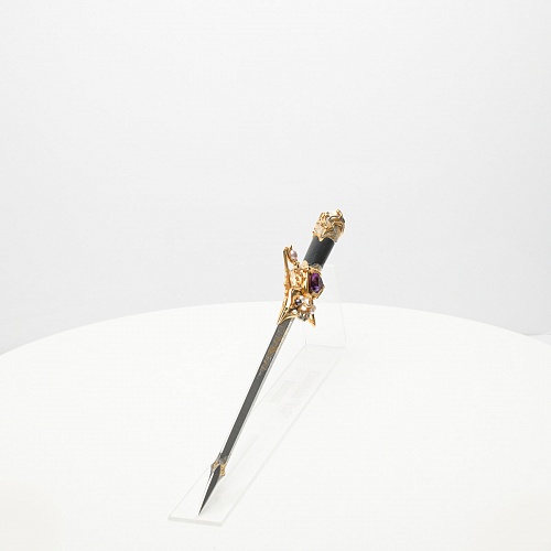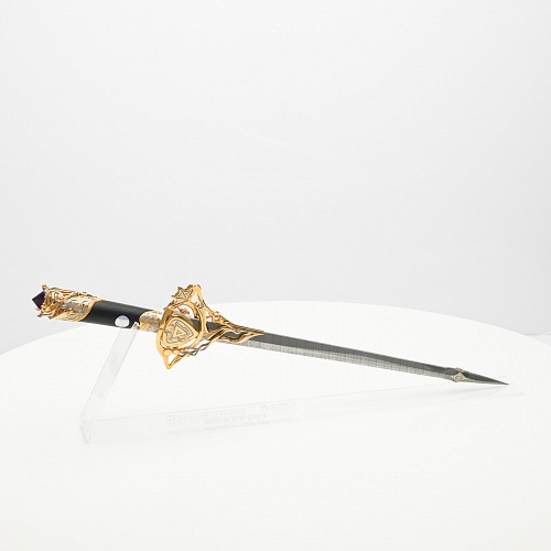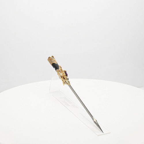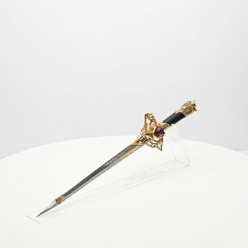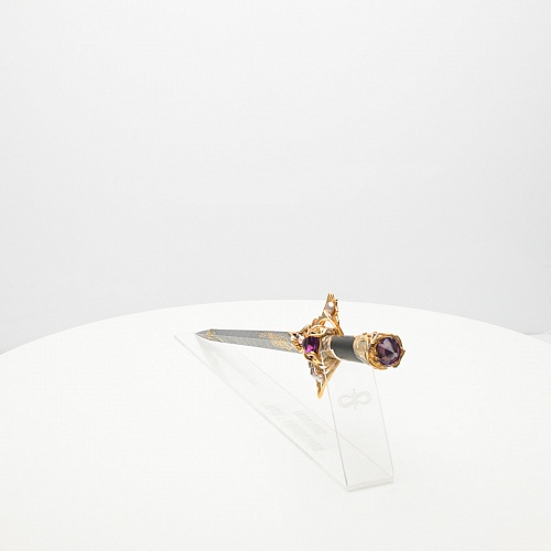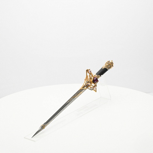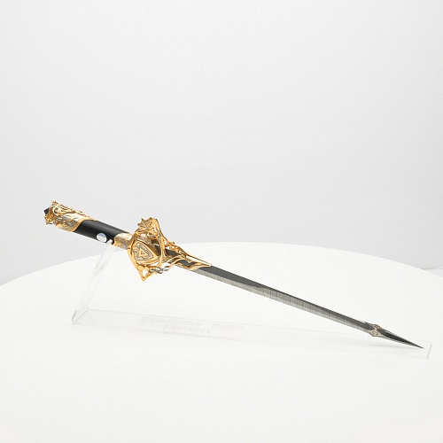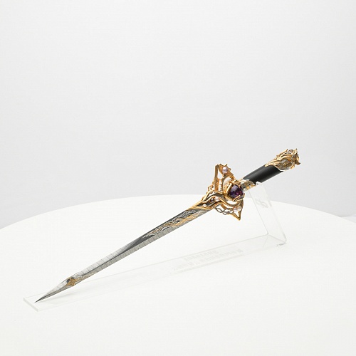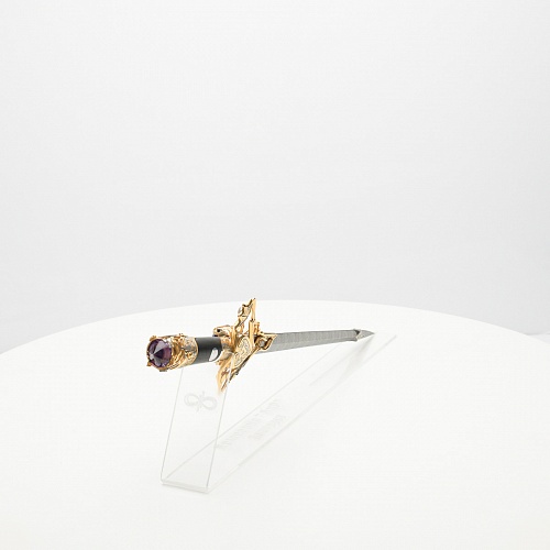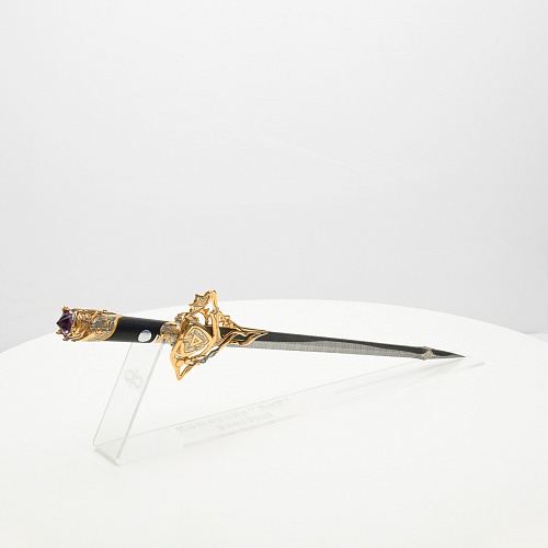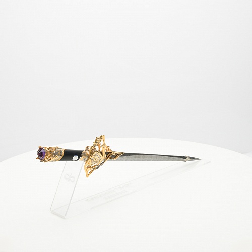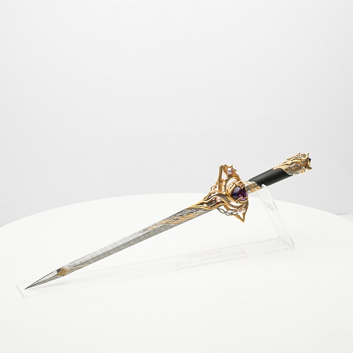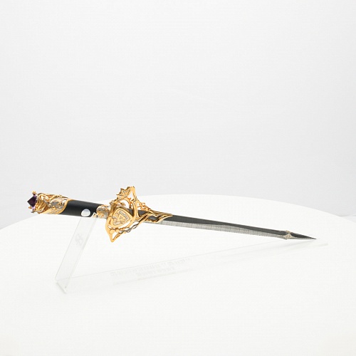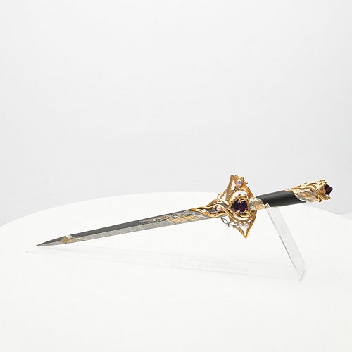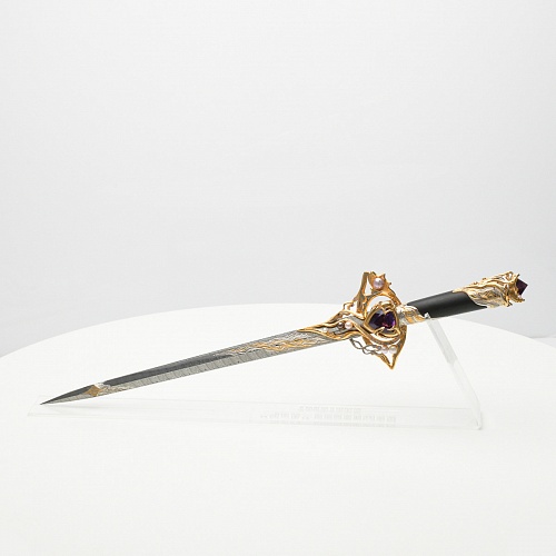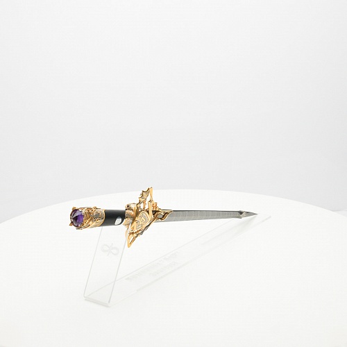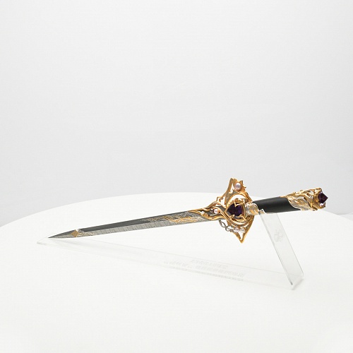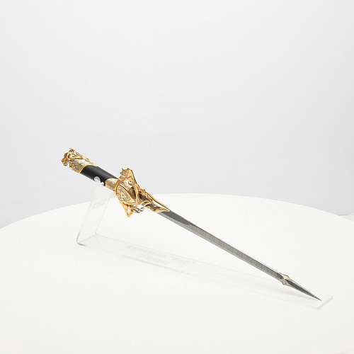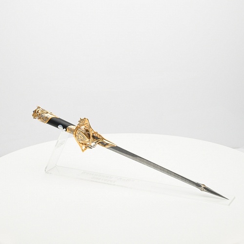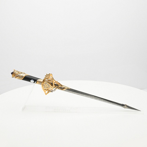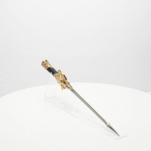 Клинок имеет зауженную к верху форму, он означает перетекание энергии с концентрацией на силах нашей Вселенной. Подобный уникальный подарок порадует как опытного коллекционера, так и рядового любителя оружейных произведений.