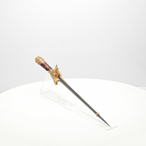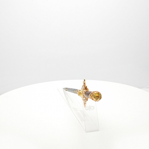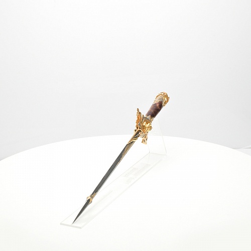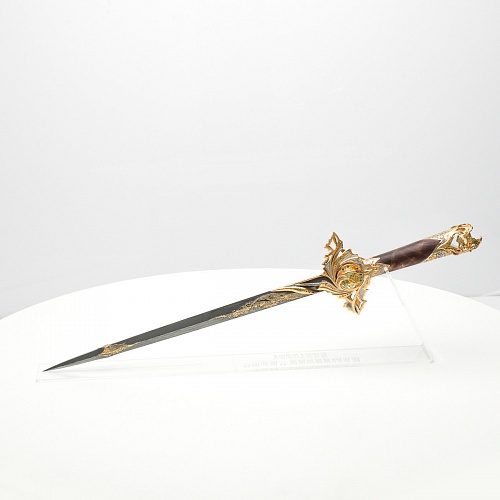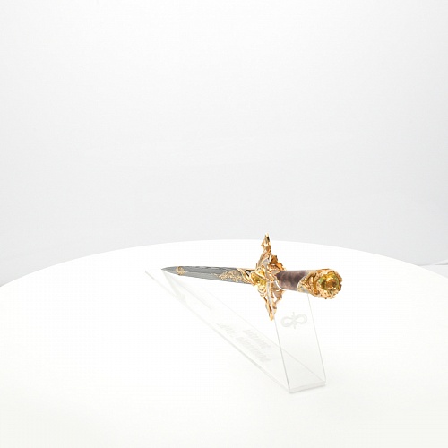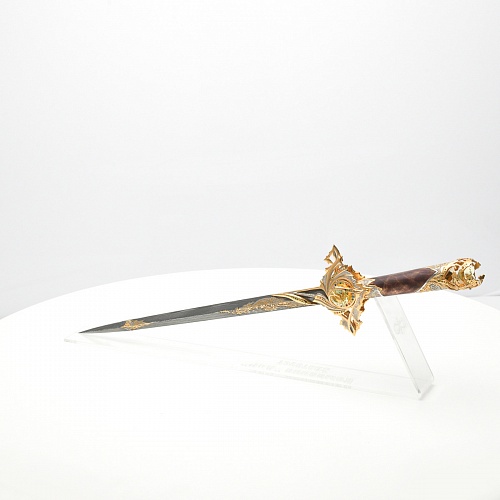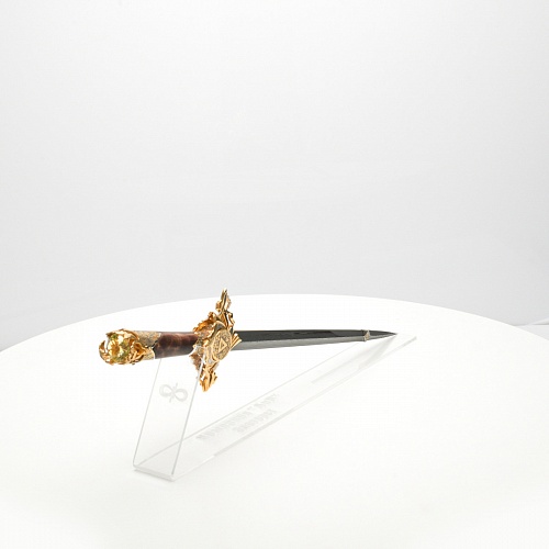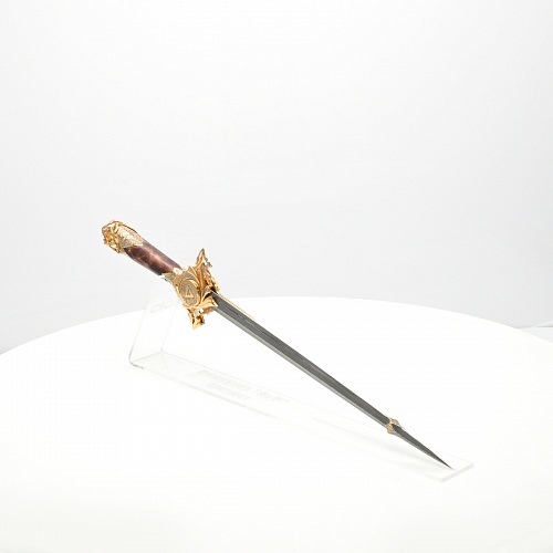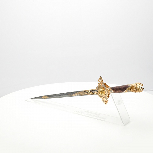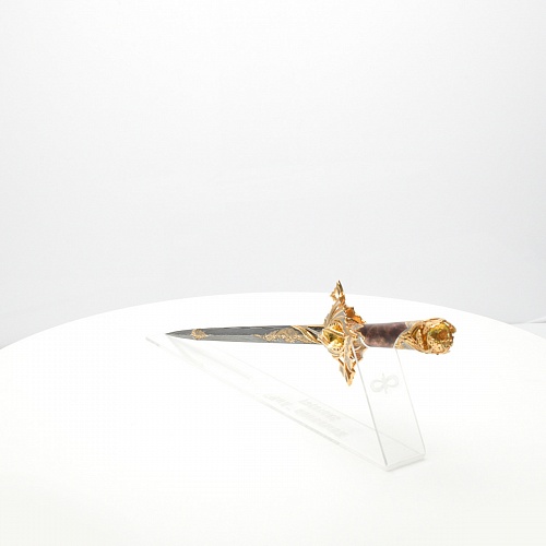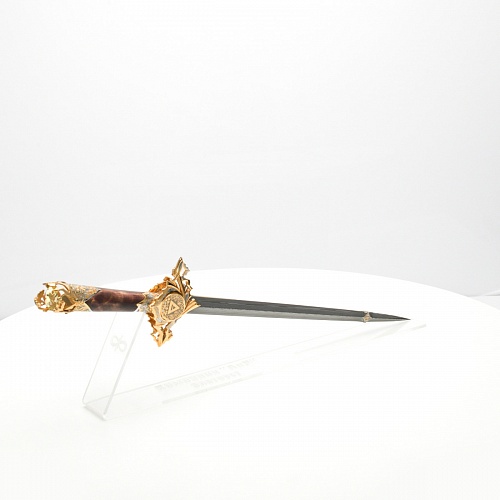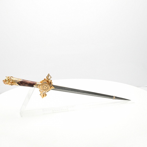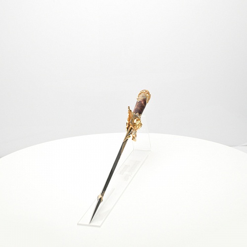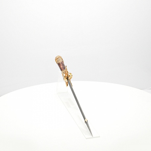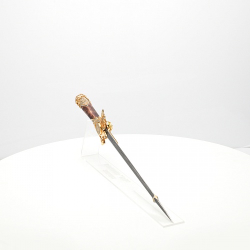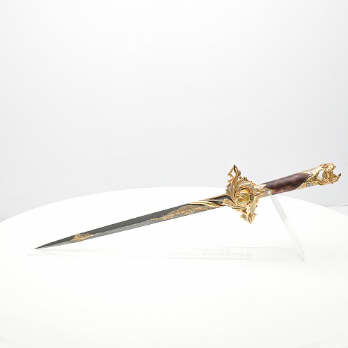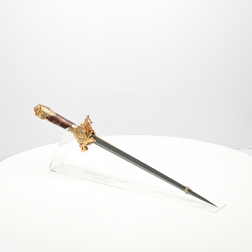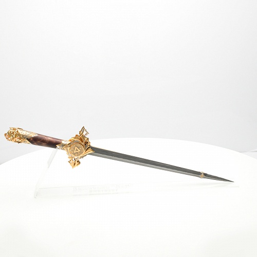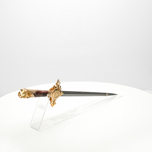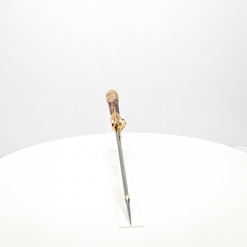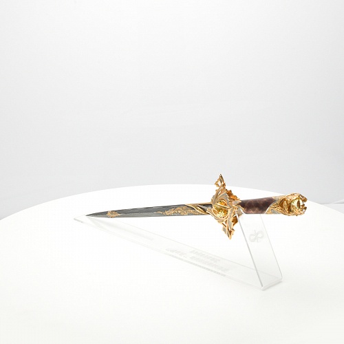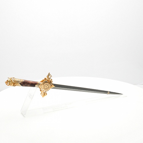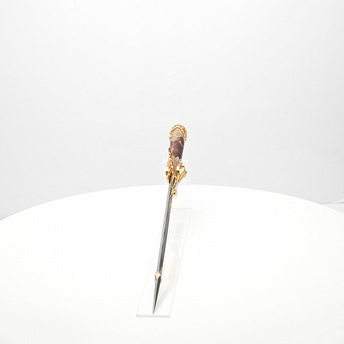 Клинок имеет зауженную к верху форму, он означает перетекание энергии с концентрацией на силах нашей Вселенной. Подобный уникальный подарок порадует как опытного коллекционера, так и рядового любителя оружейных произведений.