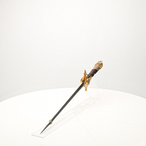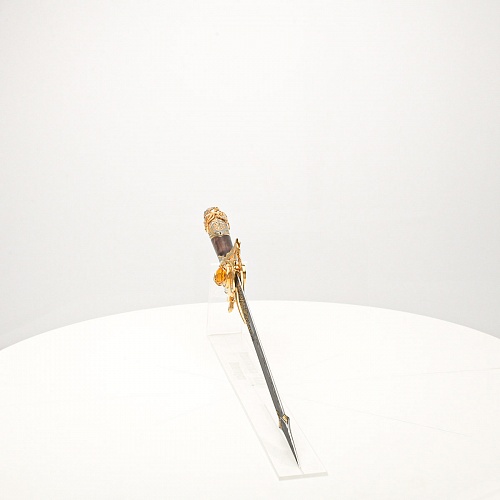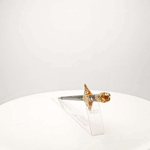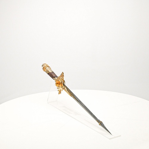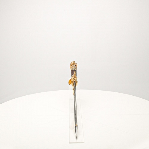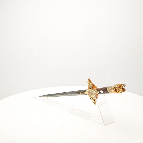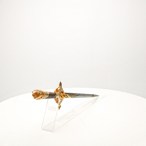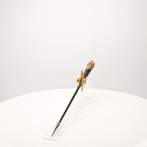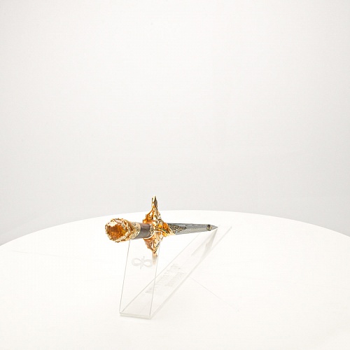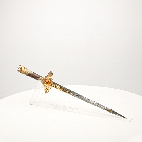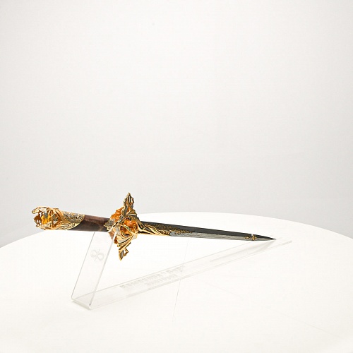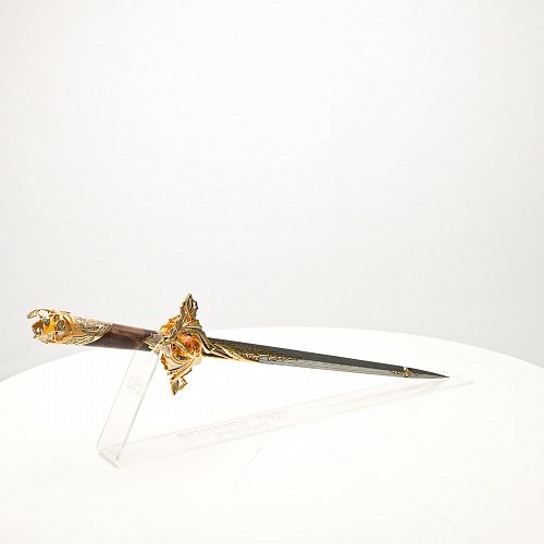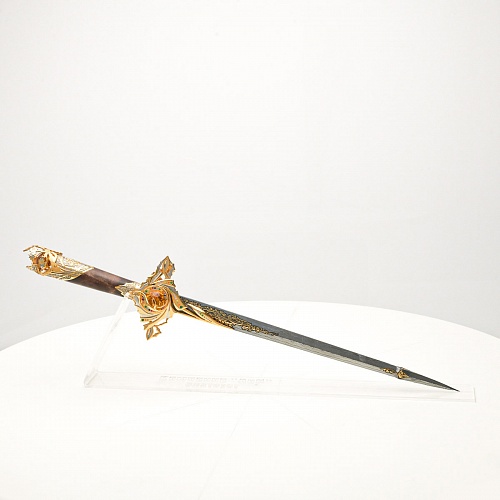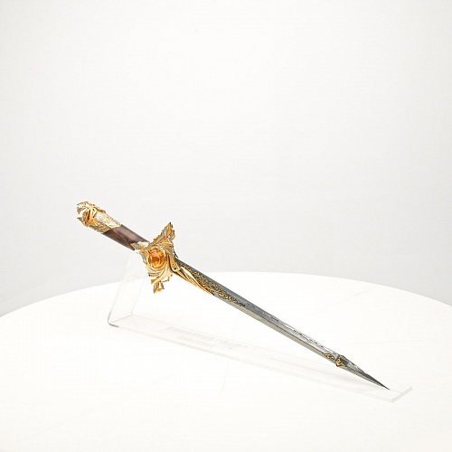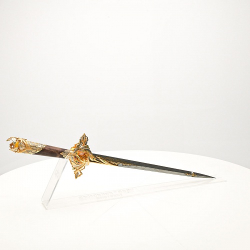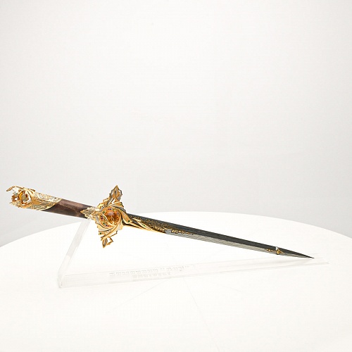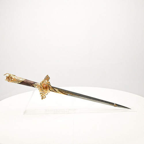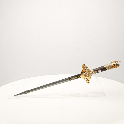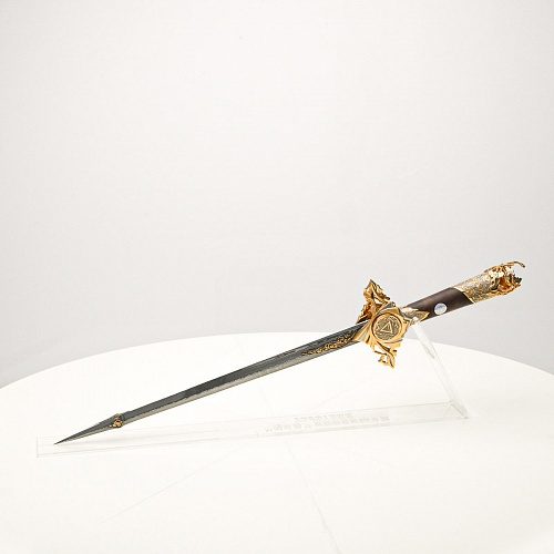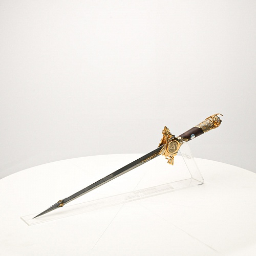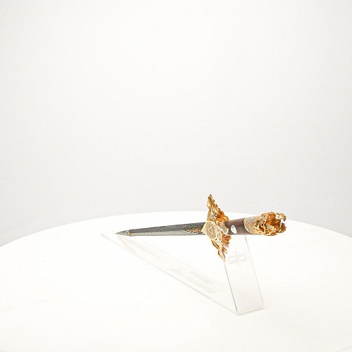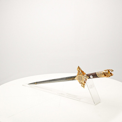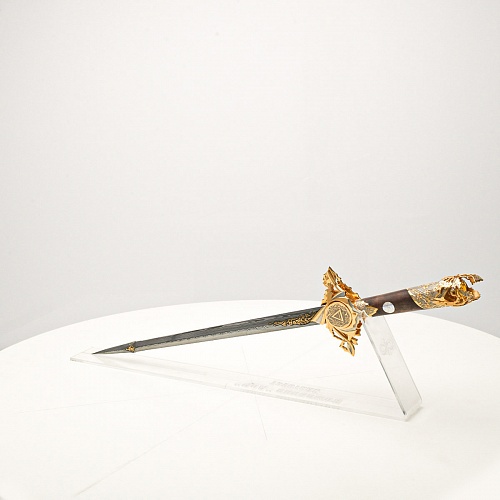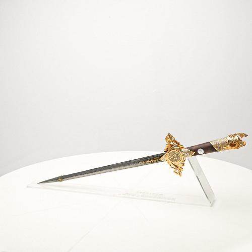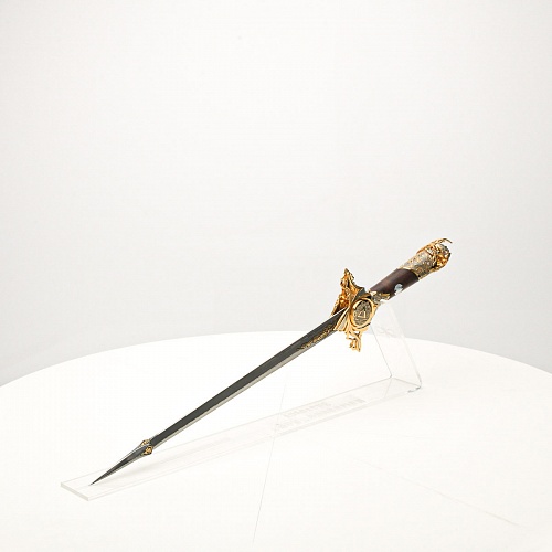 Клинок имеет зауженную к верху форму, он означает перетекание энергии с концентрацией на силах нашей Вселенной. Подобный уникальный подарок порадует как опытного коллекционера, так и рядового любителя оружейных произведений.