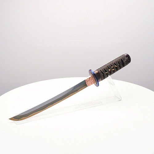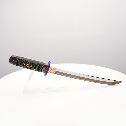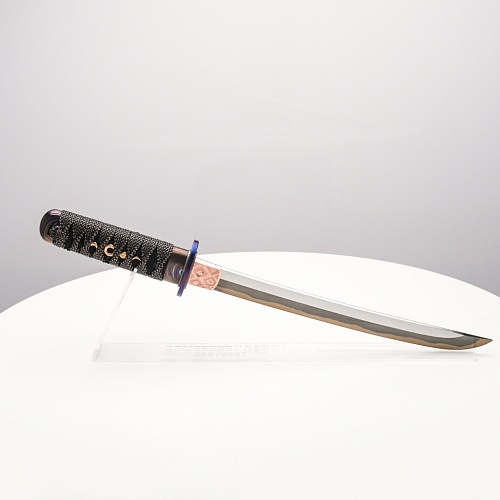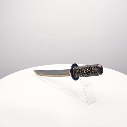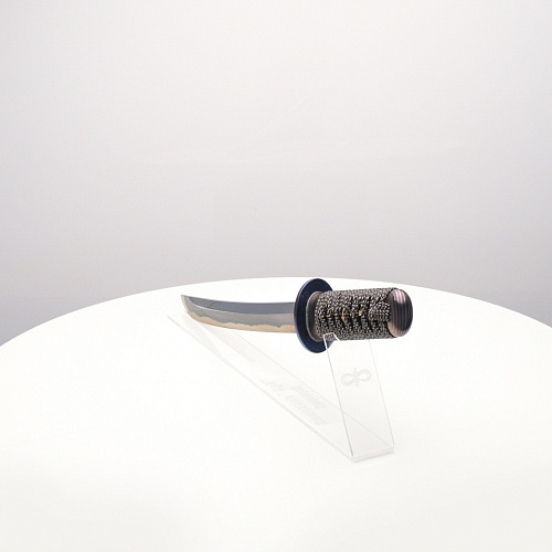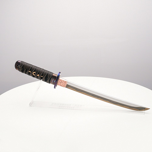 Танто "Хокку" авторы посвятили жанру традиционной японской лирической поэзии - японским трехстишиям хокку. В представленном танто, подобно в хокку, три части изделия особо заметны: рукоять из кожа ската с оригинальными мэнуки, клинок и цуба из титанового дамаска ZlaTi.