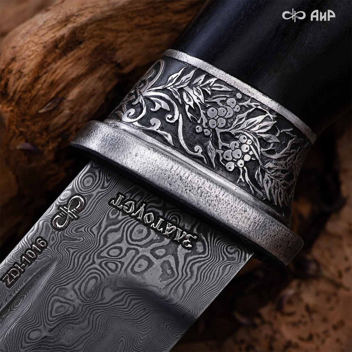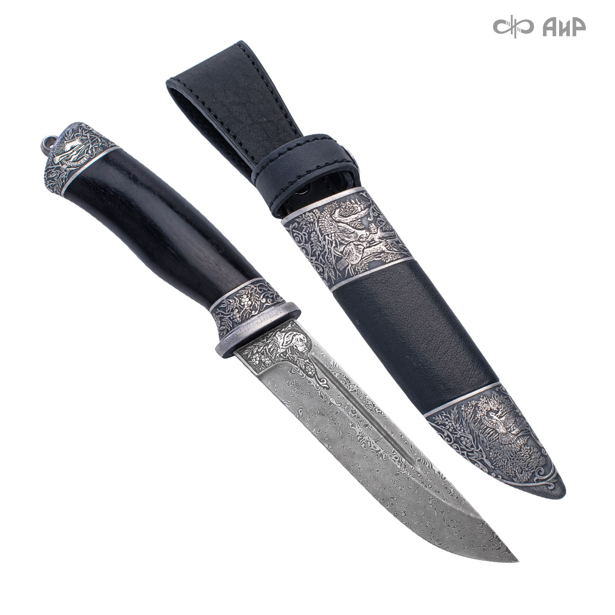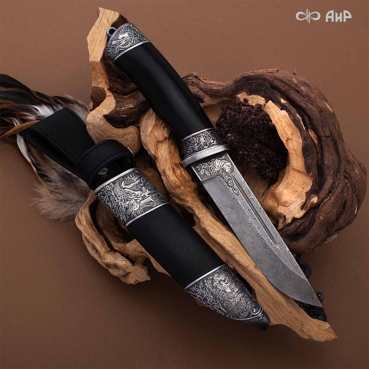 Подарочные ножи, изготовленные мастерами Компании «АиР», представляют собой удачный симбиоз красоты и функциональности. Их клинки изготавливаются из дамасской стали Zladinox и современных видов высоколегированной нержавеющей стали, что позволяет достигать таких качеств, как твердость, чистый блеск и эргономичность. Рукояти подарочных ножей «АиР» выполняются из ценных пород дерева (граб, кап березовый, кап ореховый, карельская береза). Тыльники и гарды ножей могут быть выполнены из латуни, серебра, цветного дамаска мокуме гане, титанового дамаска и покрыты золотом. На клинке подарочного ножа, как правило, методом травления, золочения, гравировки наносится рисунок на природные темы, изображающий животных и птиц, населяющих уральские леса и тайгу.