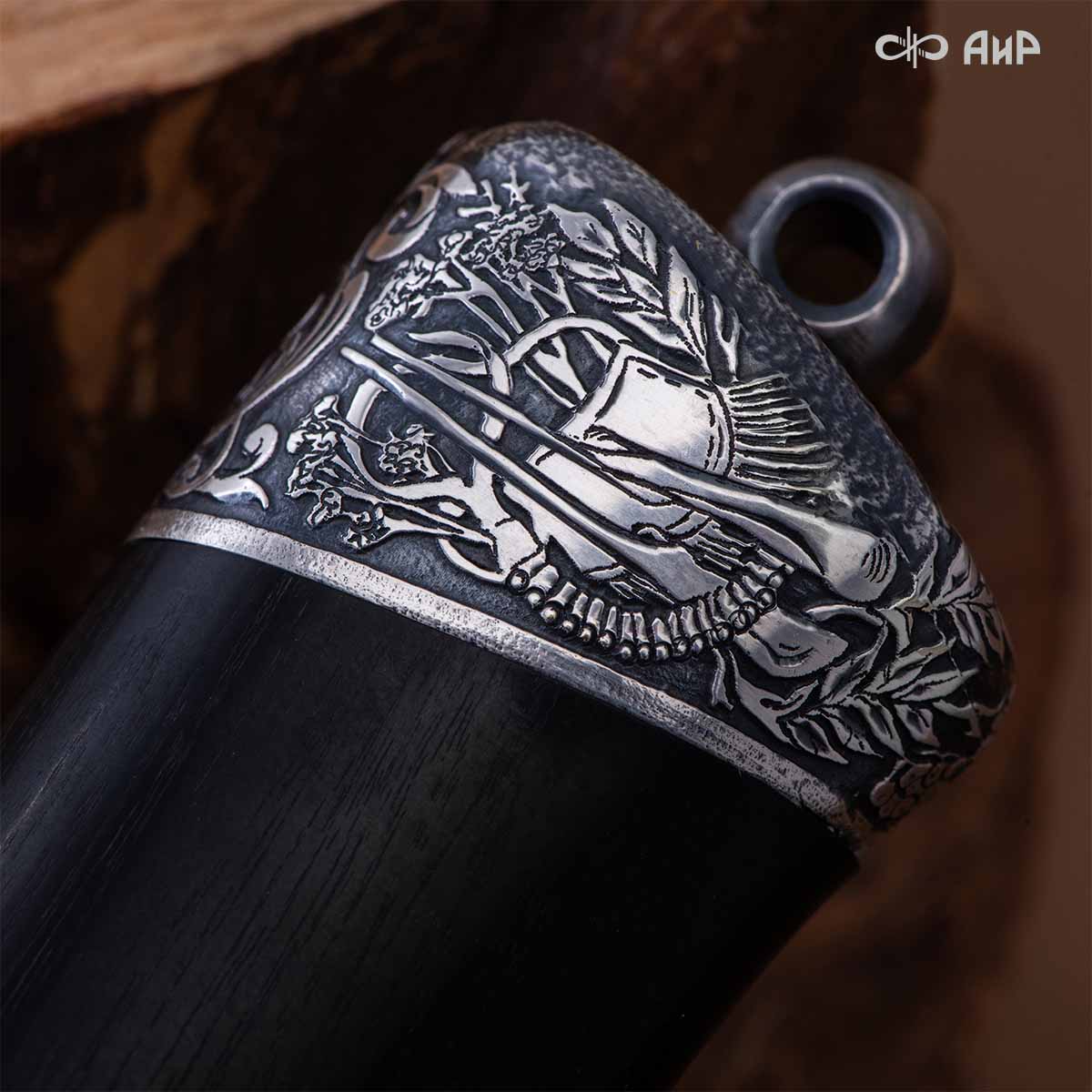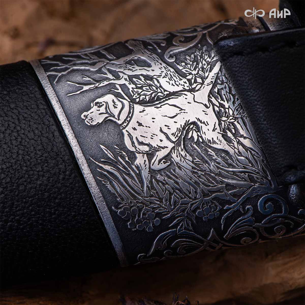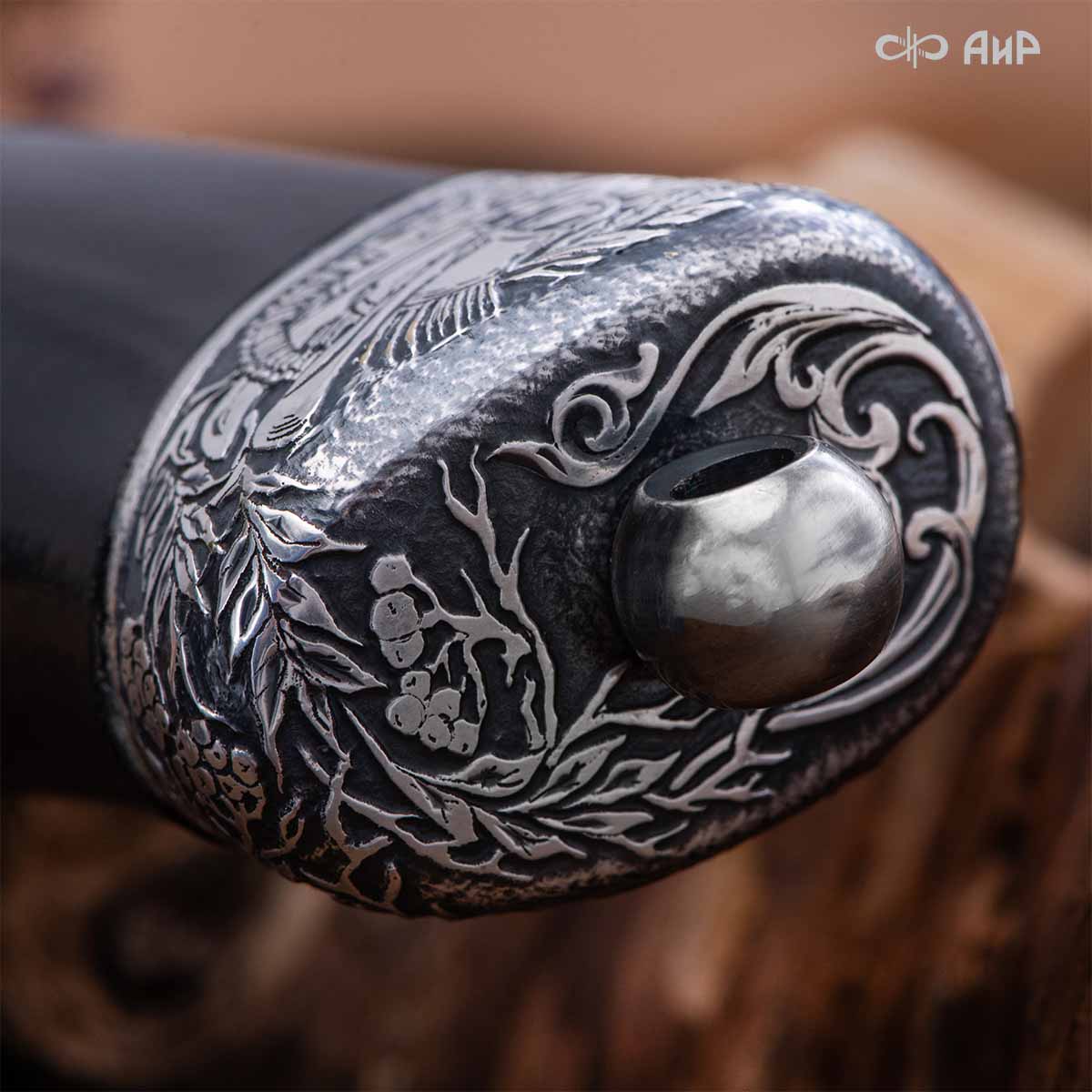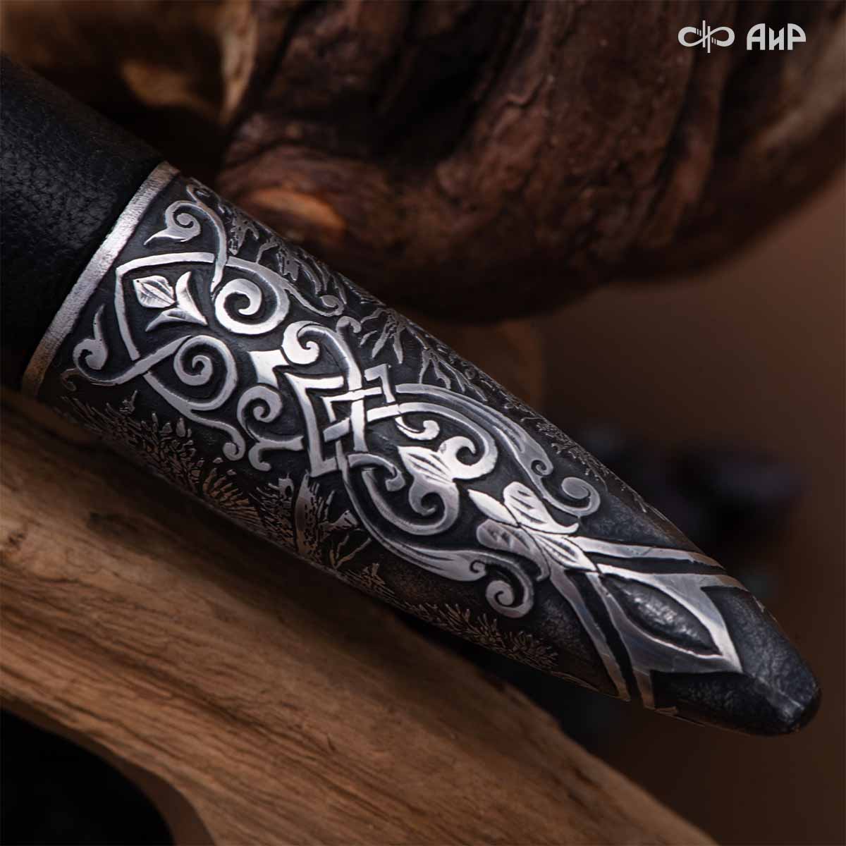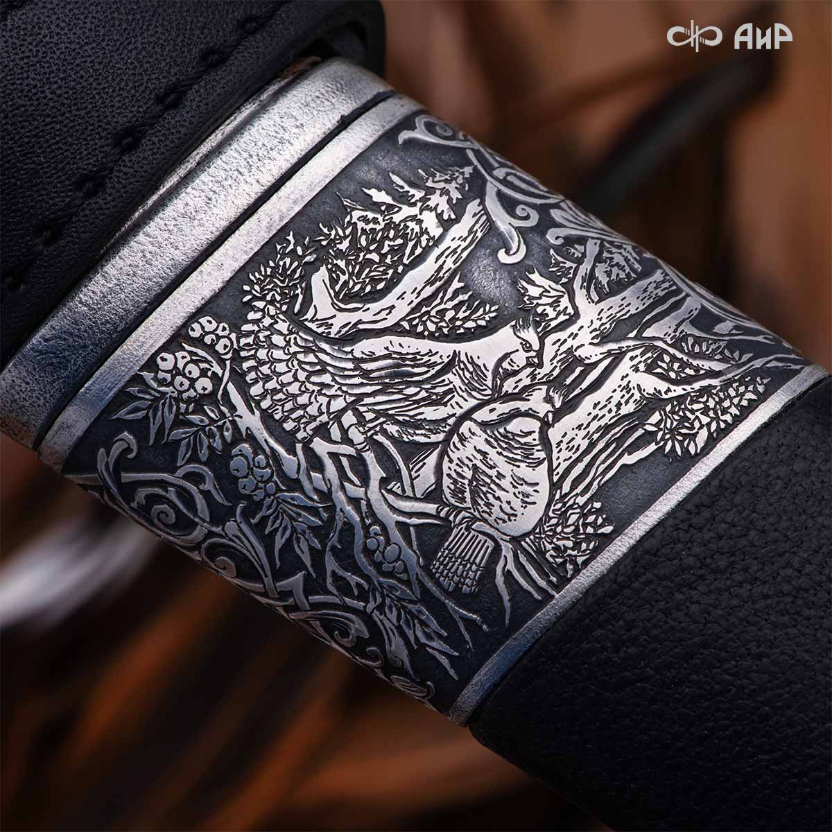 Нож в подарок ‒ сегодня вполне распространенное явление, особенно на дни рождения, юбилеи и другие знаменательные даты. Сюжет рисунка на клинке и ножнах: "Охота на глухаря".