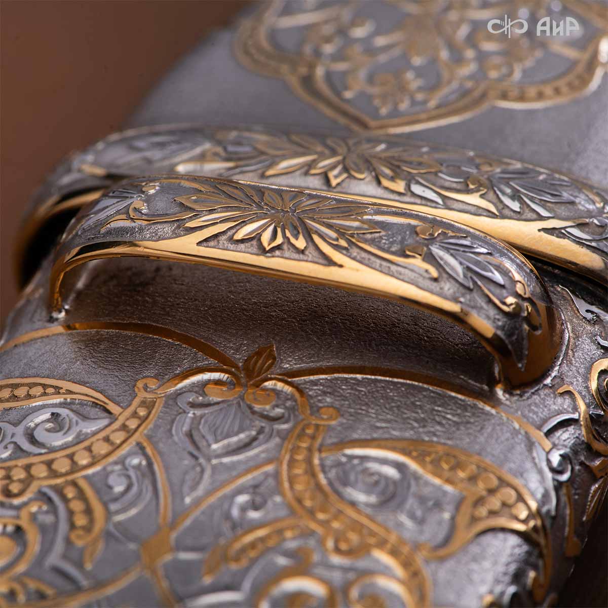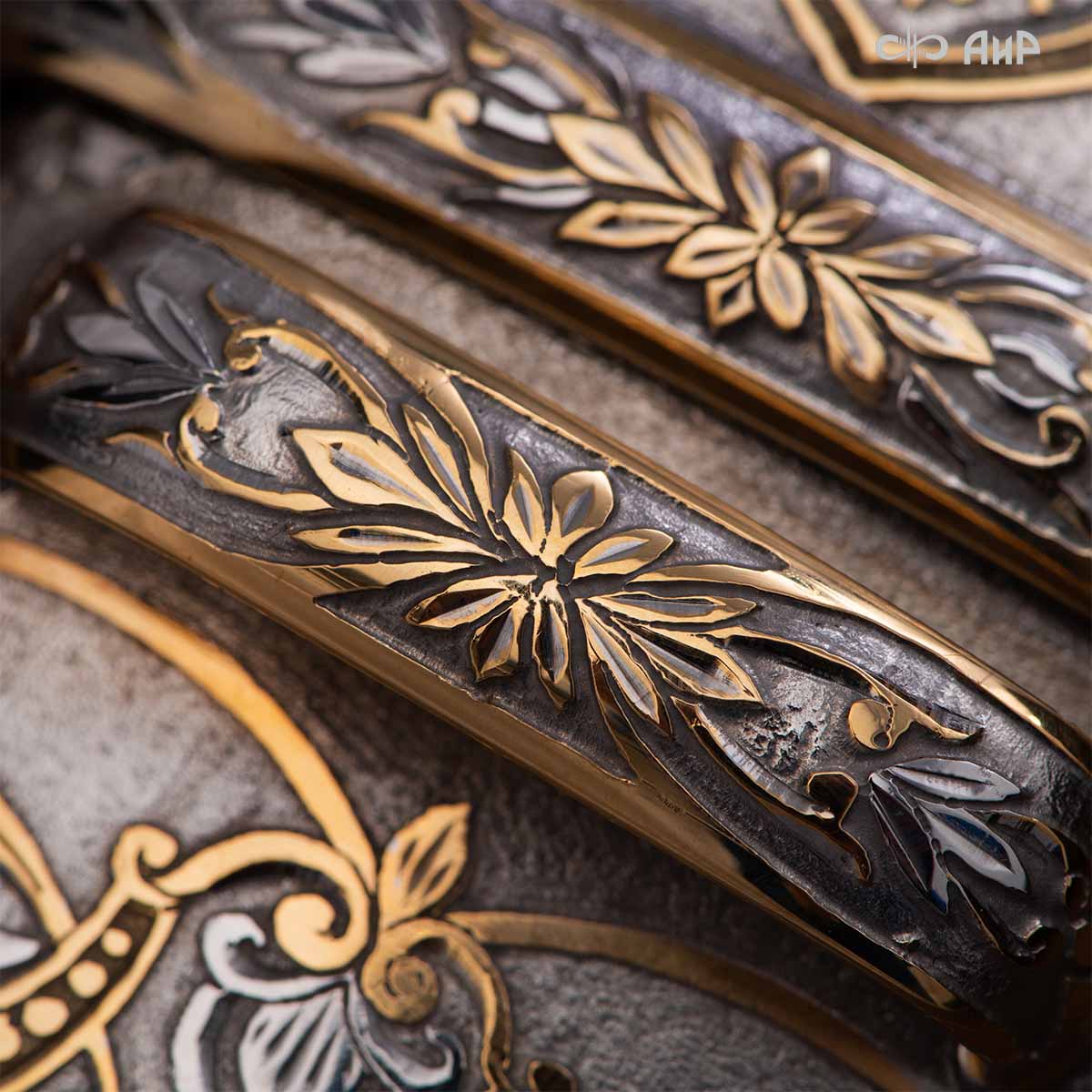 Традиционно на клинок и ножны наносится декоративный орнамент. Методом нанесения может быть гравировка, травление либо золочение гальваническим способом. В орнаменте воплощена работа целой команды граверов, художников и оружейников, искусно сочетающих творческий подход с неукоснительным следованием златоустовским традициям.