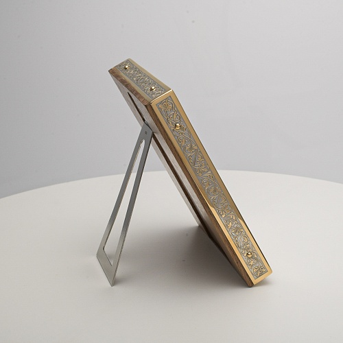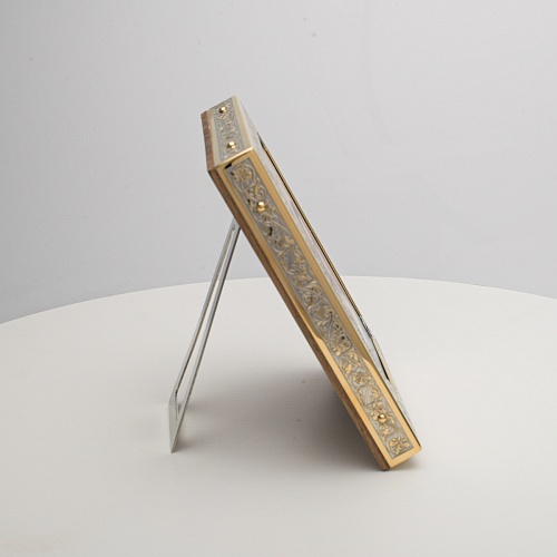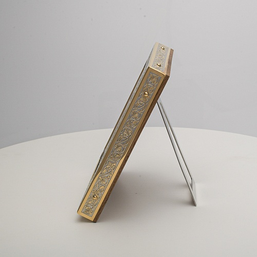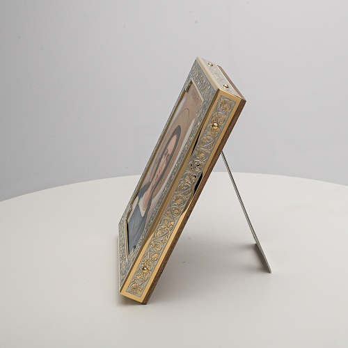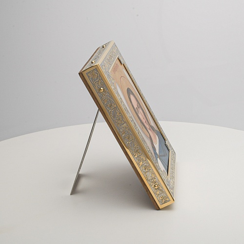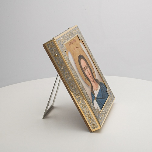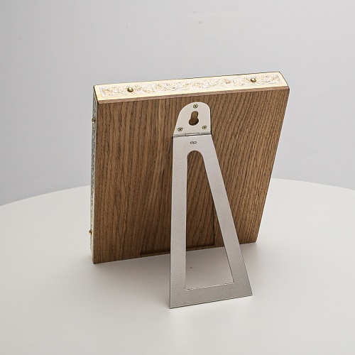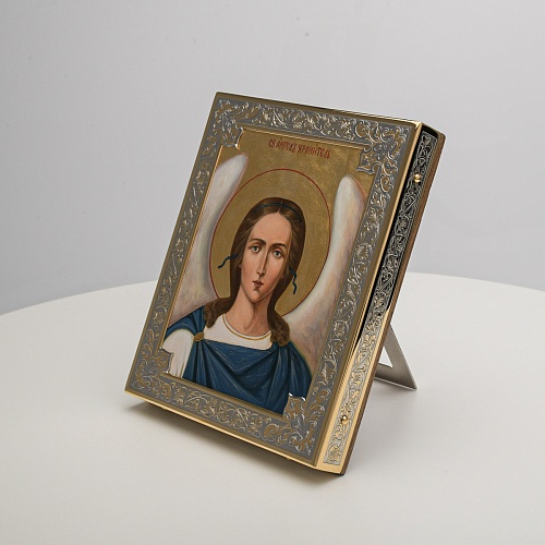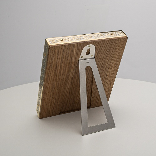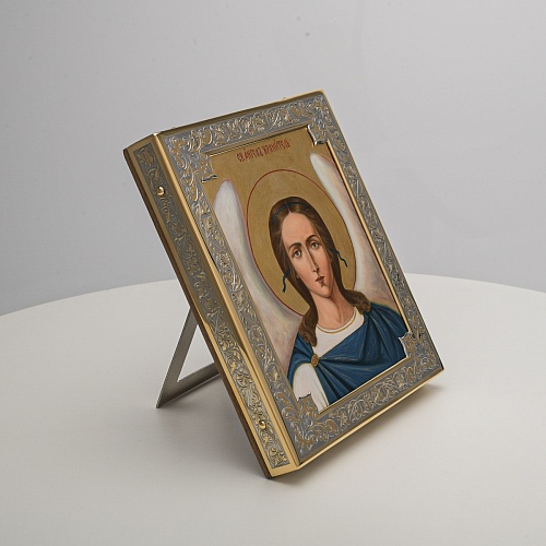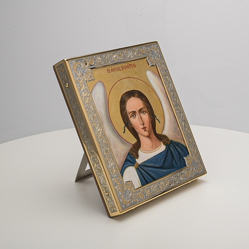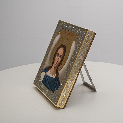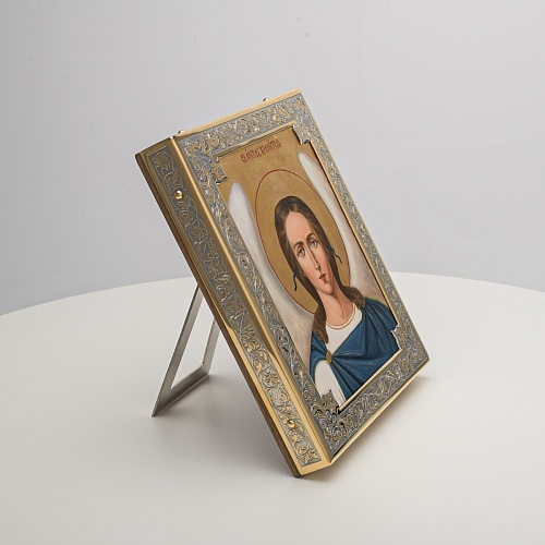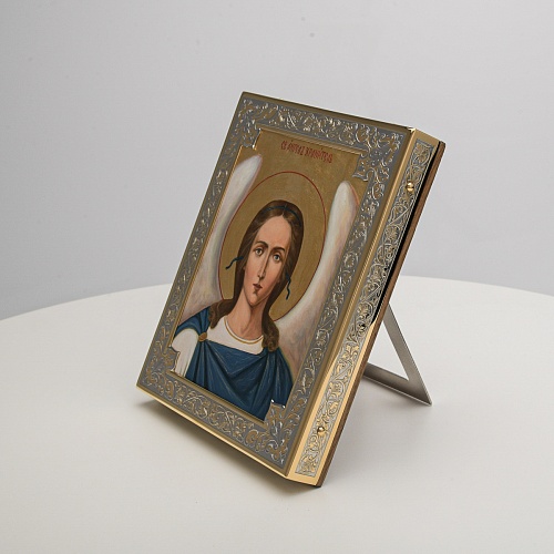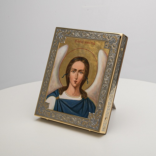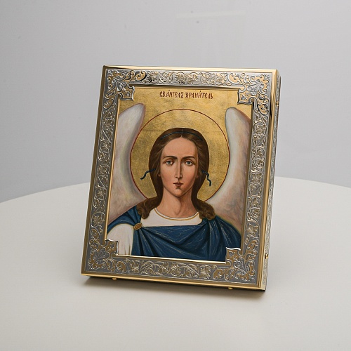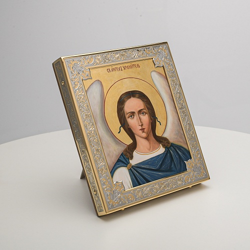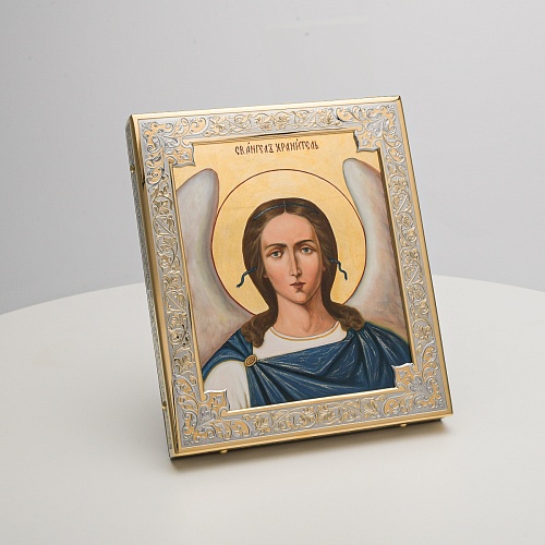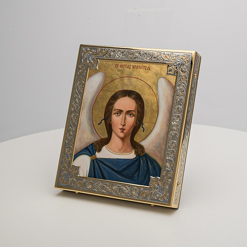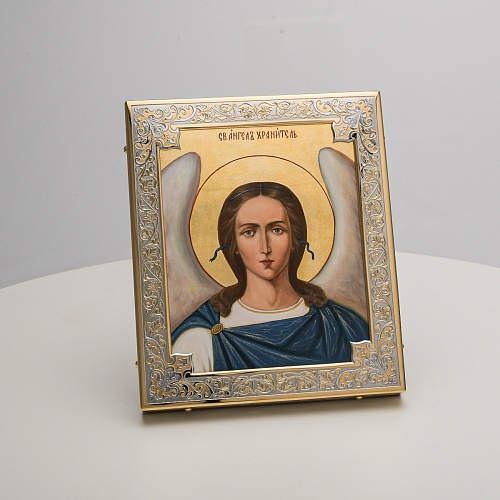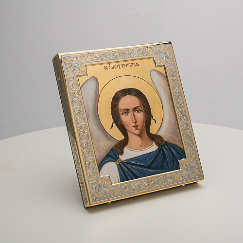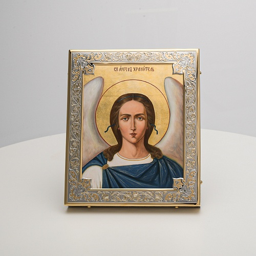 Оклад иконы «Ангел-Хранитель», выполненный мастерами компании «АиР» в г. Златоуст, придает ей особую ценность и торжественность. Оклад покрыт золотом высшей пробы (999,9°) толщиной в 1 микрон, что подчеркивает высокое мастерство и искусство создателей. Золотое покрытие не только украшает икону, но и символизирует вечность и непреходящую ценность духовного наследия. Оно защищает икону от внешних воздействий и придает ей дополнительное сияние, усиливая впечатление от образа святого. Такой оклад делает икону не только объектом религиозного почитания, но и произведением искусства, достойным восхищения и уважения.