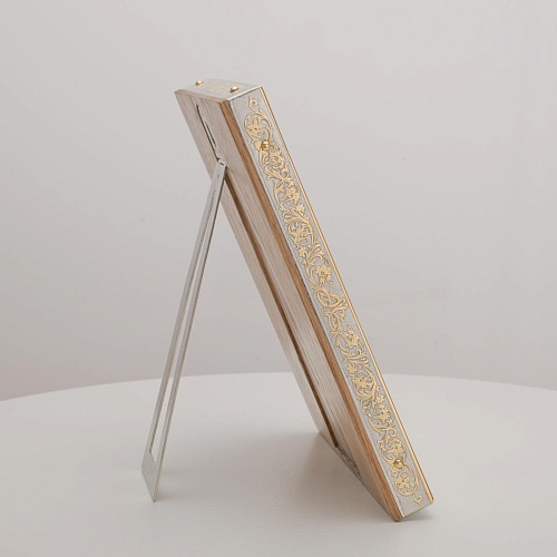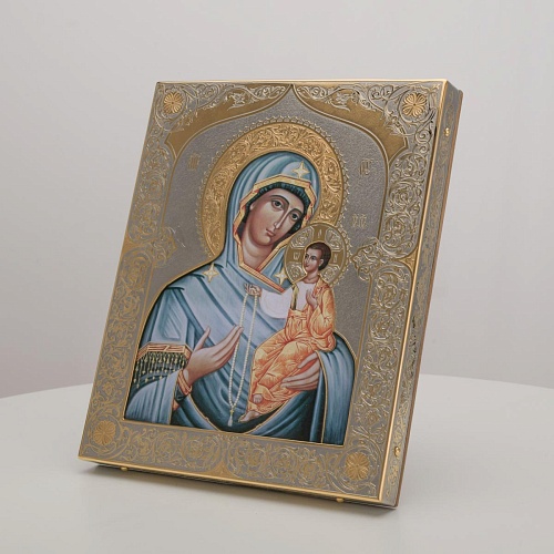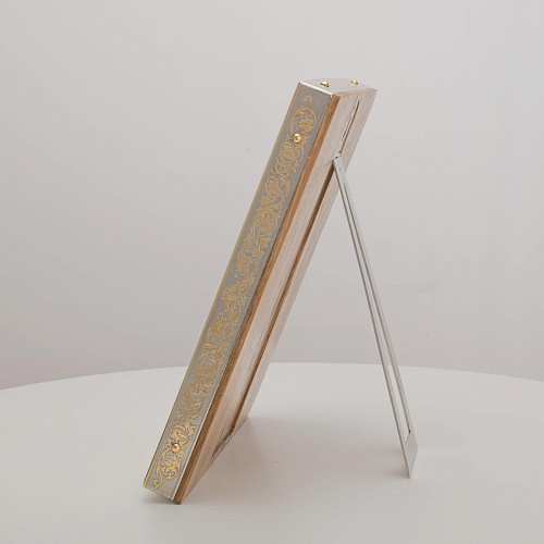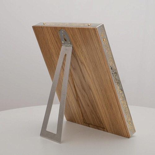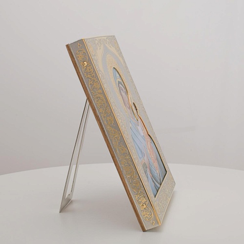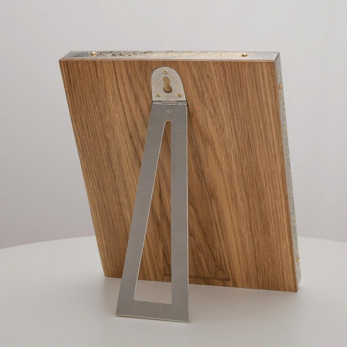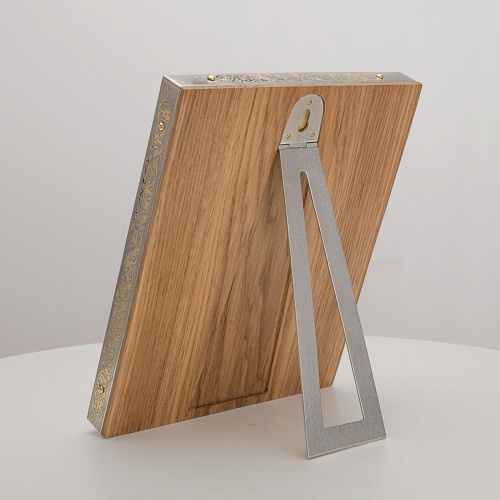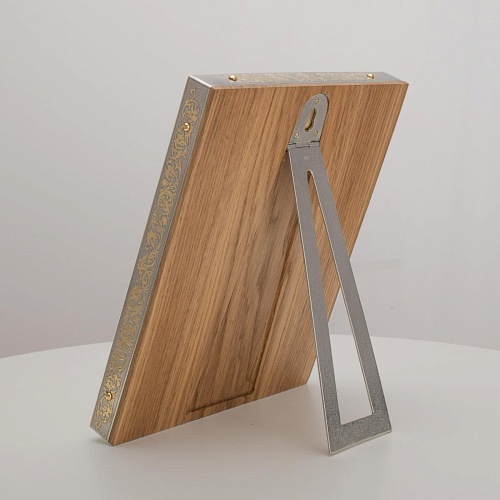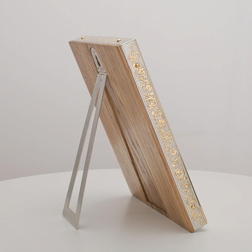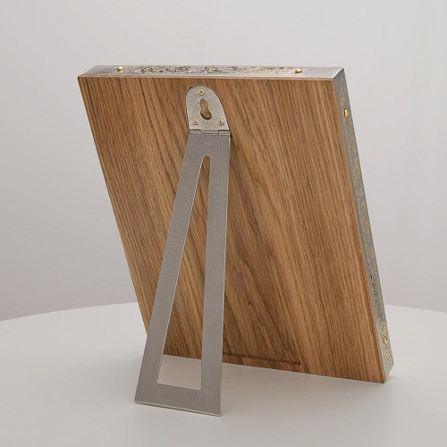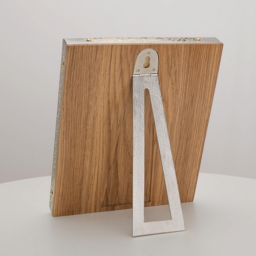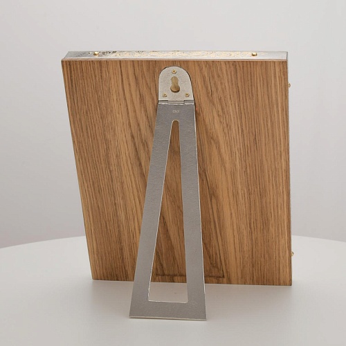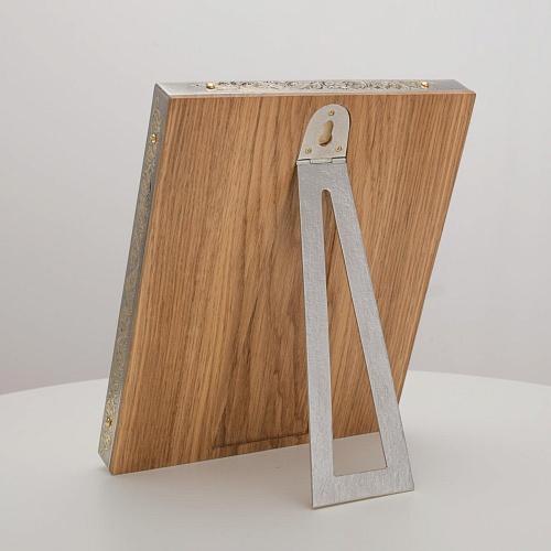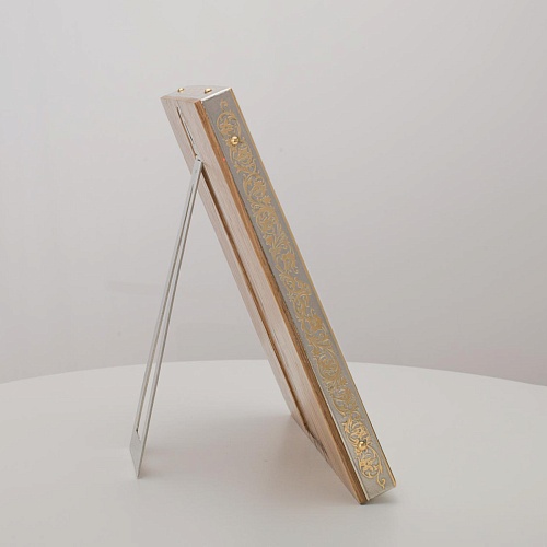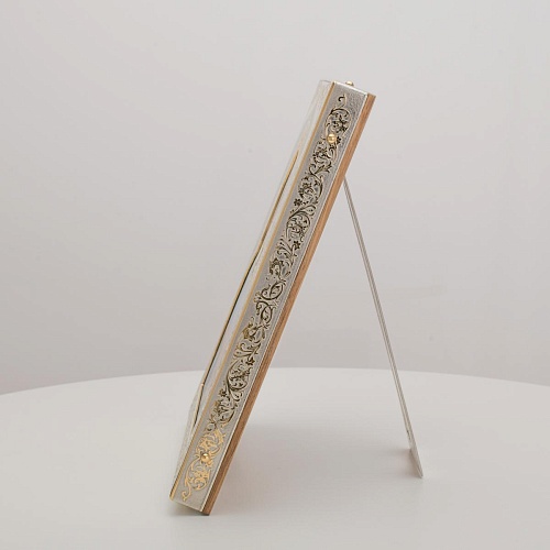 Оклад иконы «Дарование молитвы», выполненный мастерами компании «АиР» в г. Златоуст, придает ей особую ценность и торжественность. Оклад покрыт золотом высшей пробы (999,9°) толщиной в 1 микрон, что подчеркивает высокое мастерство и искусство создателей. Золотое покрытие не только украшает икону, но и символизирует вечность и непреходящую ценность духовного наследия. Оно защищает икону от внешних воздействий и придает ей дополнительное сияние, усиливая впечатление от образа святого. Такой оклад делает икону не только объектом религиозного почитания, но и произведением искусства, достойным восхищения и уважения.