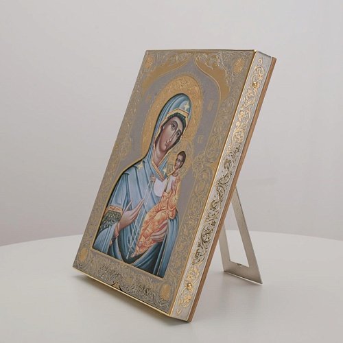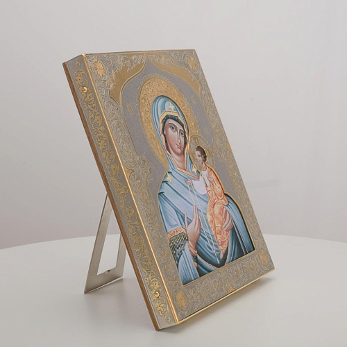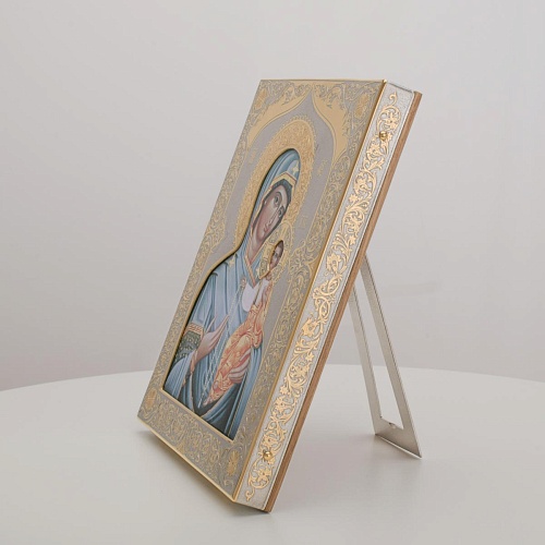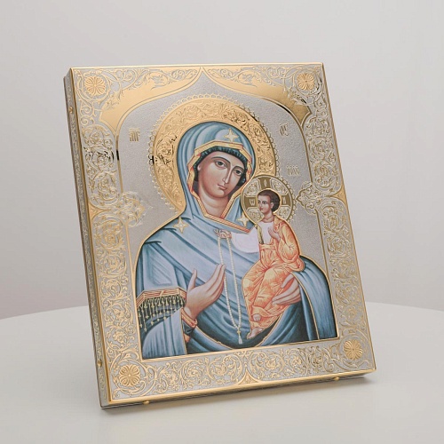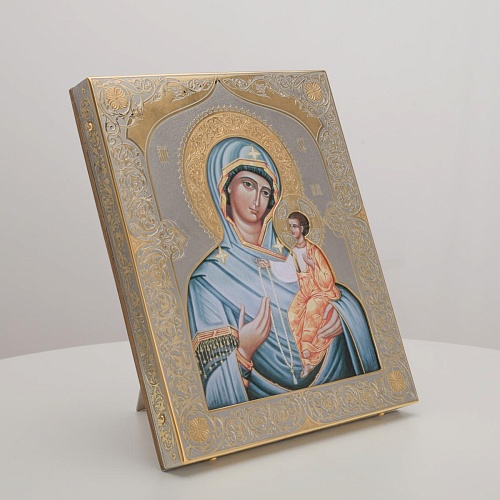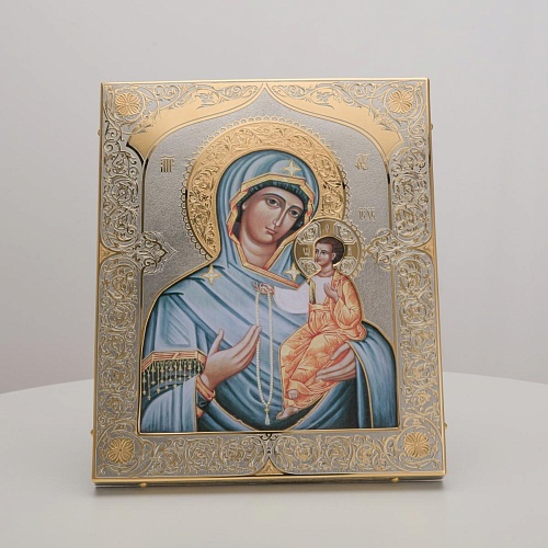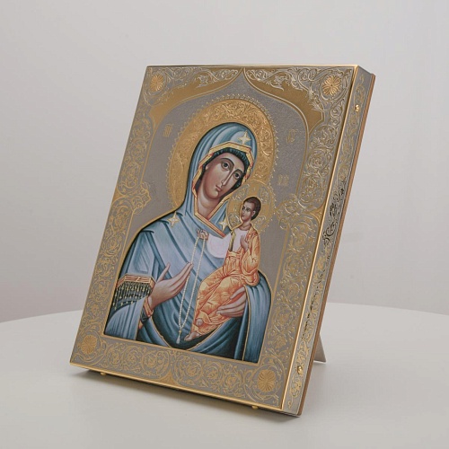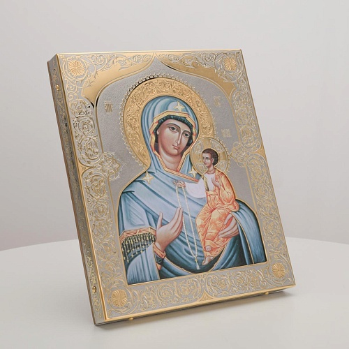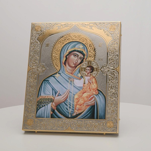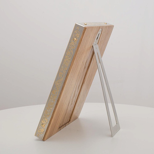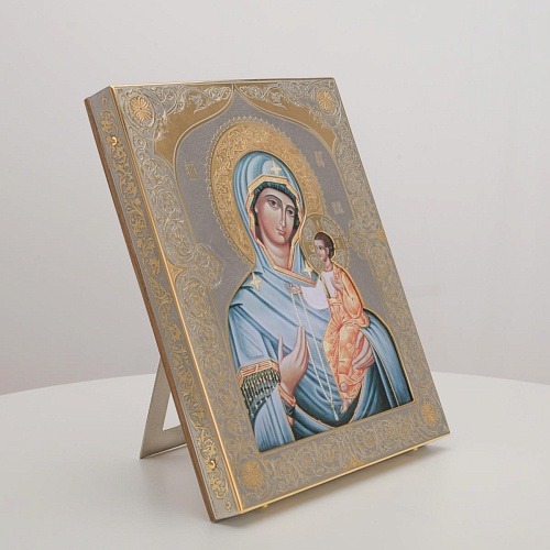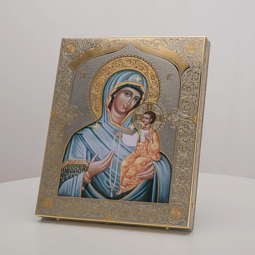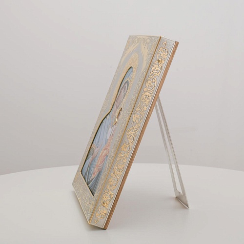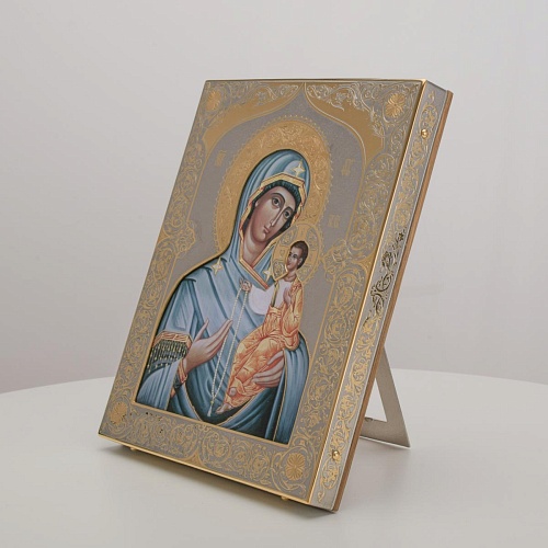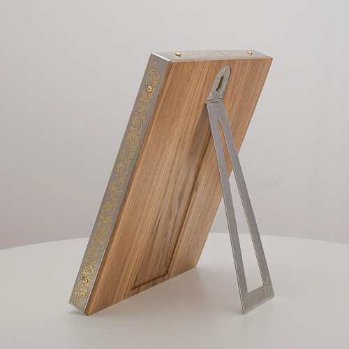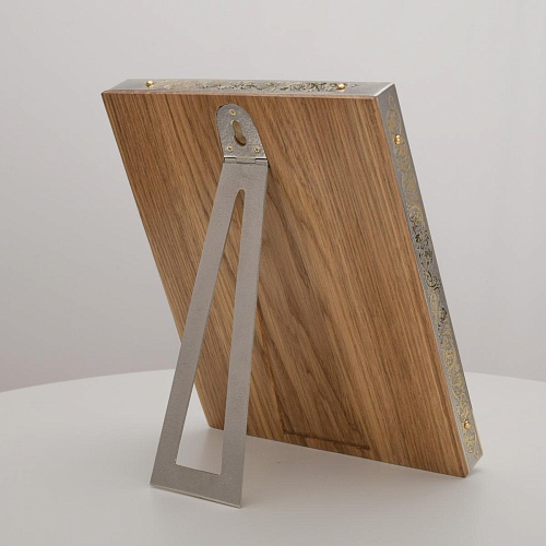 Оклад иконы «Дарование молитвы», выполненный мастерами компании «АиР» в г. Златоуст, придает ей особую ценность и торжественность. Оклад покрыт золотом высшей пробы (999,9°) толщиной в 1 микрон, что подчеркивает высокое мастерство и искусство создателей. Золотое покрытие не только украшает икону, но и символизирует вечность и непреходящую ценность духовного наследия. Оно защищает икону от внешних воздействий и придает ей дополнительное сияние, усиливая впечатление от образа святого. Такой оклад делает икону не только объектом религиозного почитания, но и произведением искусства, достойным восхищения и уважения.