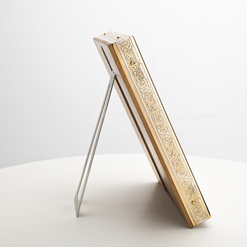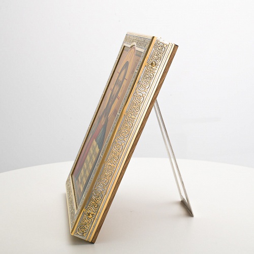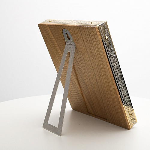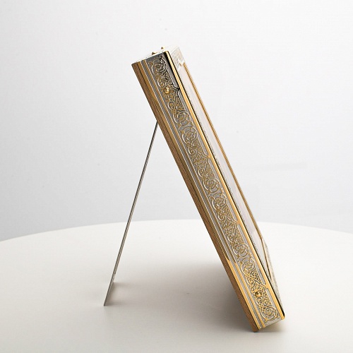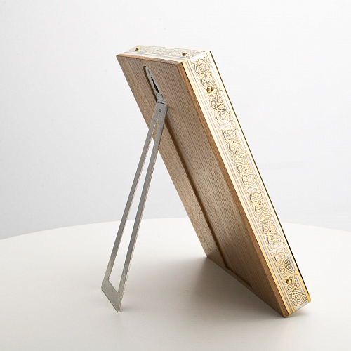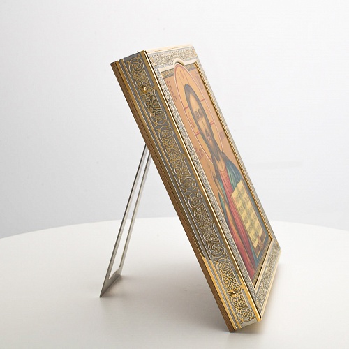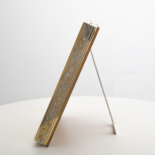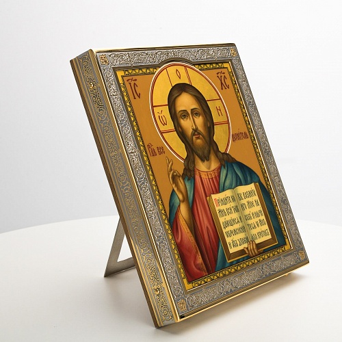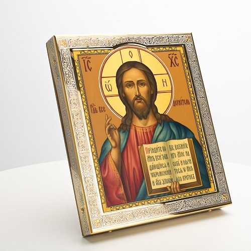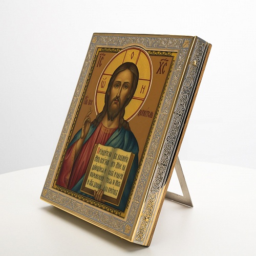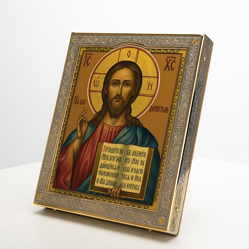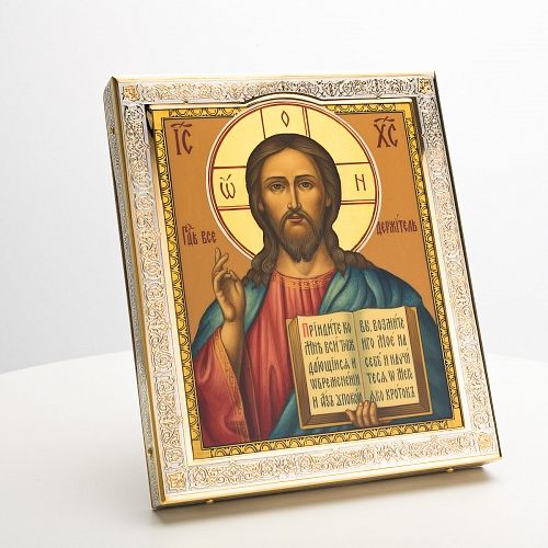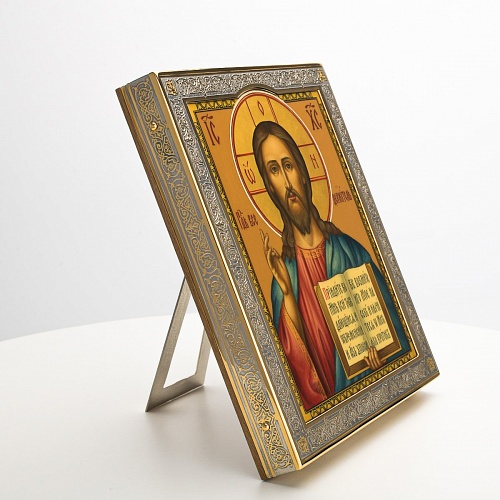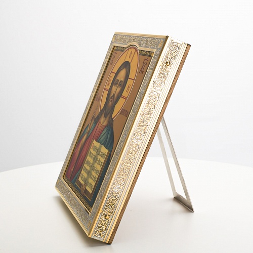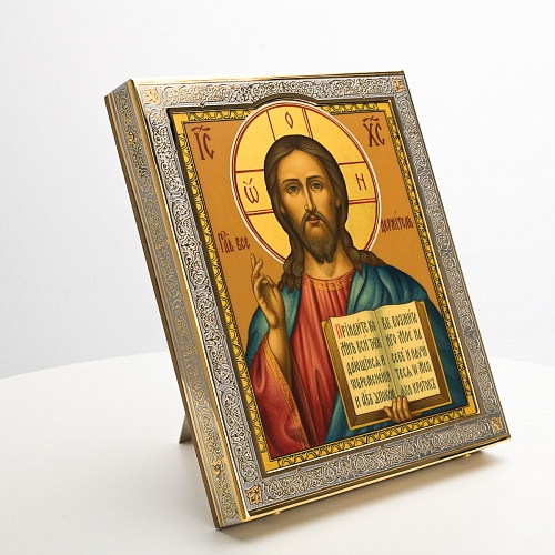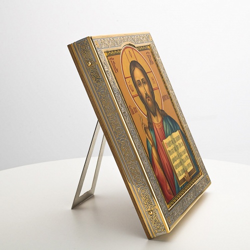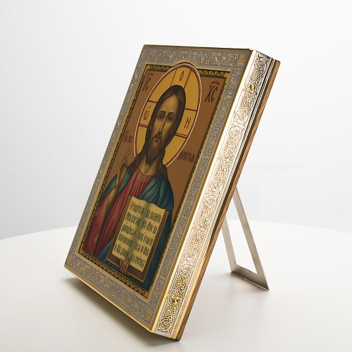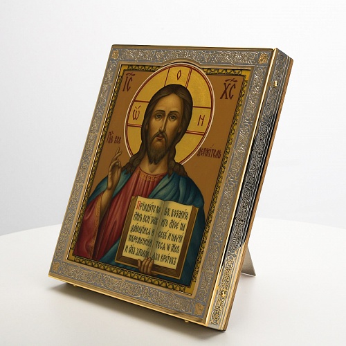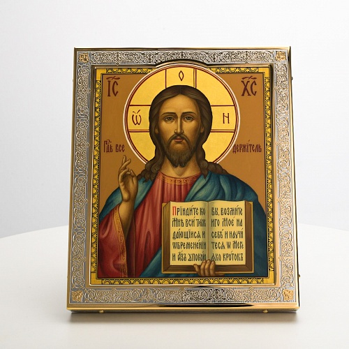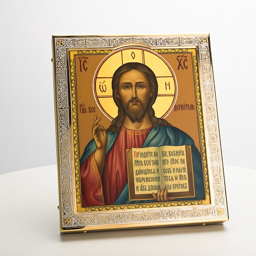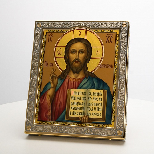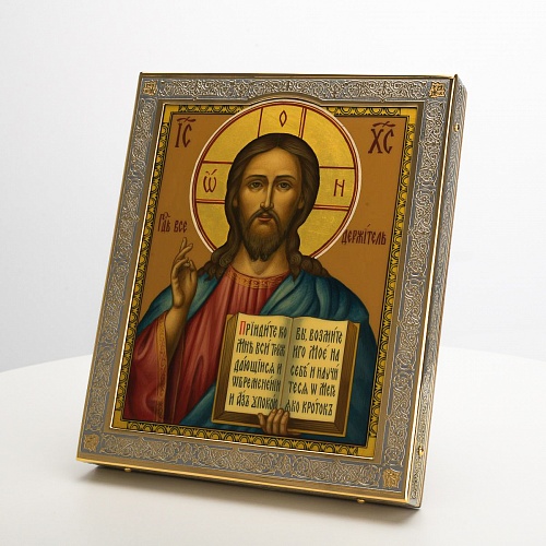 Икона в окладе “Господь Вседержитель” – это уникальное произведение искусства. Оклад иконы, созданный мастерами компании “АиР” в городе Златоуст, покрыт золотом высшей пробы (999,9°) толщиной в 1 микрон, что придает ей особую ценность и благородство. Каждый элемент оклада тщательно проработан, что делает икону настоящим шедевром художественного мастерства и символом духовной силы.