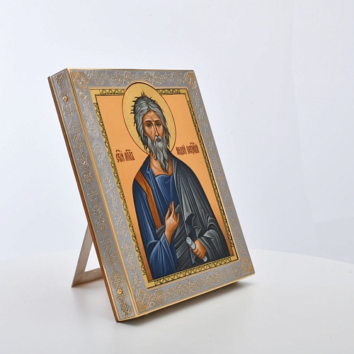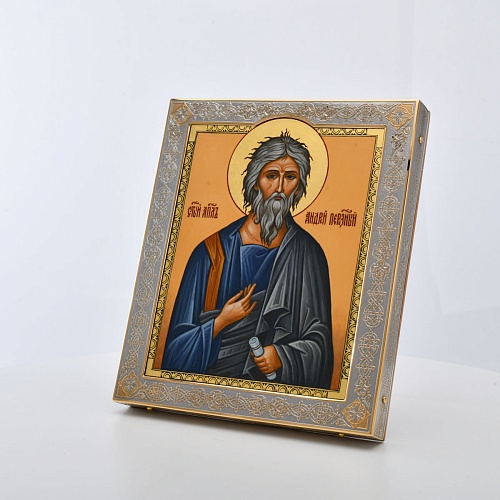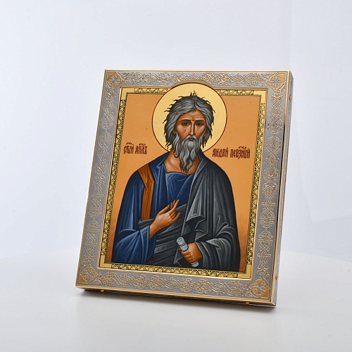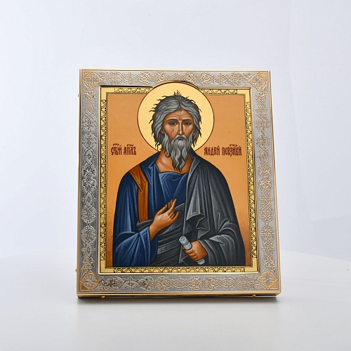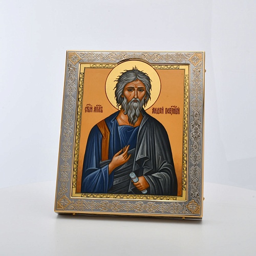 Оклад и киот иконы с любовью и мастерством выполнен в Компании «АиР» г. Златоуст. Покрытый золотом высшей пробы (999,9°) толщиной 1 микрон, оклад идеально дополняет образ Святого апостола, подчеркивая его Божественное значение и вечную ценность. Эта икона станет не только предметом поклонения, но и символом духовного просвещения и надежды для каждого, кто обратится к Святому апостолу Андрею Первозванному.