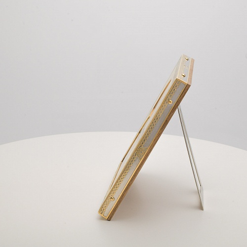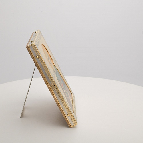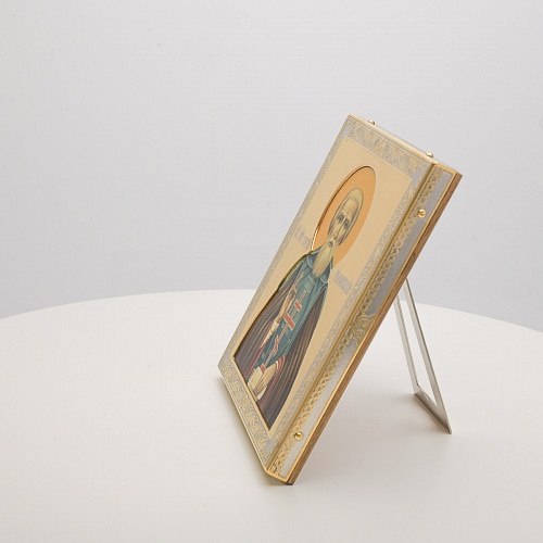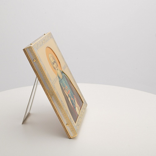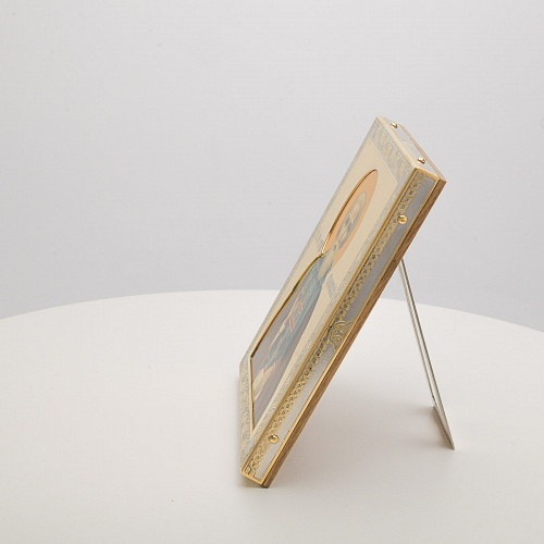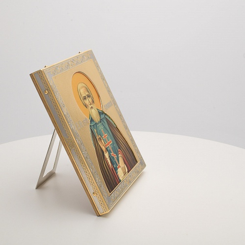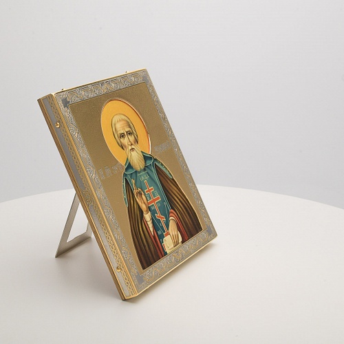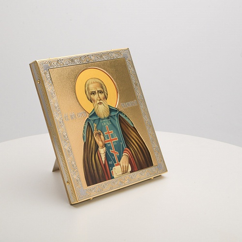 Оклад иконы «Преподобный Сергий Радонежский», выполненный мастерами компании «АиР» в г. Златоуст, придает ей особую ценность и торжественность. Оклад покрыт золотом высшей пробы (999,9°) толщиной в 1 микрон, что подчеркивает высокое мастерство и искусство создателей. Золотое покрытие не только украшает икону, но и символизирует вечность и непреходящую ценность духовного наследия. Оно защищает икону от внешних воздействий и придает ей дополнительное сияние, усиливая впечатление от образа святого. Такой оклад делает икону не только объектом религиозного почитания, но и произведением искусства, достойным восхищения и уважения.