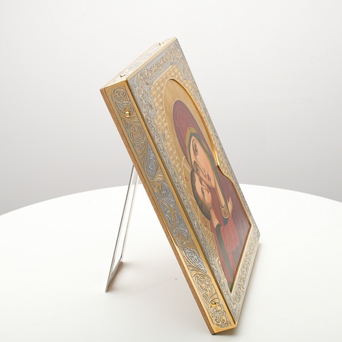 Современный оклад иконы Владимирской Божьей Матери, выполненный мастерами компании “АиР”, является настоящим произведением искусства. Он изготовлен с использованием высочайших технологий и материалов, каждый его элемент выполнен с тщательной проработкой деталей, что делает икону настоящим произведением искусства. Златоуст известен своими уникальными традициями художественного ремесла, и этот оклад является ярким примером мастерства и преданности своему делу. Мастера “АиР” использовали уникальные технологии и традиционные приёмы художественной обработки металлов, чтобы создать этот шедевр. Оклад покрыт золотом высшей пробы (999,9°) толщиной в 1 микрон, что придает иконе особую ценность и благородство. Золото символизирует чистоту, вечность и божественное сияние. Золотой оклад не только подчеркивает духовное значение иконы, но и делает её ещё более величественной и торжественной, привлекая внимание верующих и ценителей искусства. Икона в окладе Владимирская Божья Матерь от компании “АиР” способствует счастливому браку, поскольку крепкие семейные узы, без ссор и раздоров - это залог крепкой страны. Брак считается небольшим государством, но такие маленькие государства являются частичками одной большой державы.
