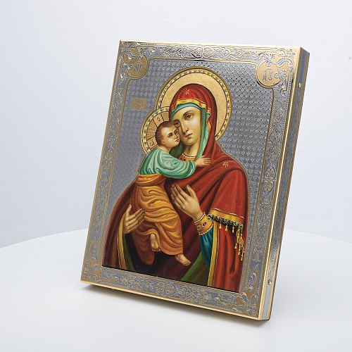 Современный оклад иконы Владимирской Божьей Матери, выполненный мастерами компании “АиР”, является настоящим произведением искусства. Он изготовлен с использованием высочайших технологий и материалов, каждый его элемент выполнен с тщательной проработкой деталей, что делает икону настоящим произведением искусства. Златоуст известен своими уникальными традициями художественного ремесла, и этот оклад является ярким примером мастерства и преданности своему делу. Мастера “АиР” использовали уникальные технологии и традиционные приёмы художественной обработки металлов, чтобы создать этот шедевр. Оклад покрыт золотом высшей пробы (999,9°) толщиной в 1 микрон, что придает иконе особую ценность и благородство. Золото символизирует чистоту, вечность и божественное сияние. Золотой оклад не только подчеркивает духовное значение иконы, но и делает её ещё более величественной и торжественной, привлекая внимание верующих и ценителей искусства. Икона в окладе Владимирская Божья Матерь от компании “АиР” способствует счастливому браку, поскольку крепкие семейные узы, без ссор и раздоров - это залог крепкой страны. Брак считается небольшим государством, но такие маленькие государства являются частичками одной большой державы.
