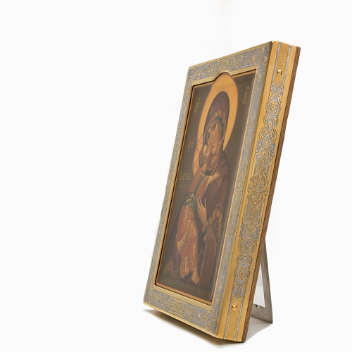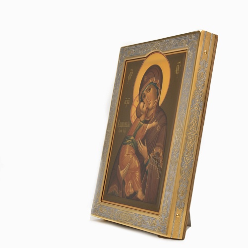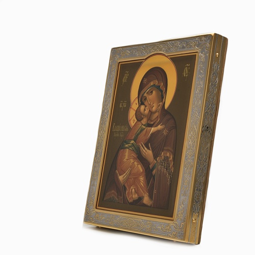 Современный оклад иконы Владимирской Божьей Матери, выполненный мастерами компании “АиР”, является настоящим произведением искусства. Он изготовлен с использованием высочайших технологий и материалов, каждый его элемент выполнен с тщательной проработкой деталей, что делает икону настоящим произведением искусства. Златоуст известен своими уникальными традициями художественного ремесла, и этот оклад является ярким примером мастерства и преданности своему делу. Мастера “АиР” использовали уникальные технологии и традиционные приёмы художественной обработки металлов, чтобы создать этот шедевр. Оклад покрыт золотом высшей пробы (999,9°) толщиной в 1 микрон, что придает иконе особую ценность и благородство. Золото символизирует чистоту, вечность и божественное сияние. Золотой оклад не только подчеркивает духовное значение иконы, но и делает её ещё более величественной и торжественной, привлекая внимание верующих и ценителей искусства. Икона в окладе Владимирская Божья Матерь от компании “АиР” способствует счастливому браку, поскольку крепкие семейные узы, без ссор и раздоров - это залог крепкой страны. Брак считается небольшим государством, но такие маленькие государства являются частичками одной большой державы.