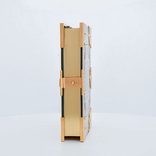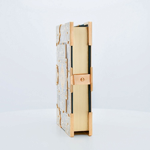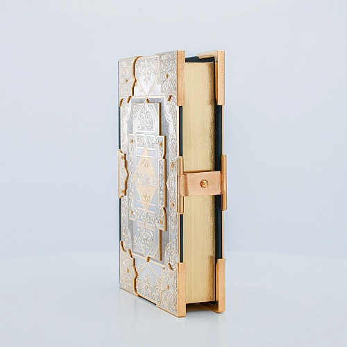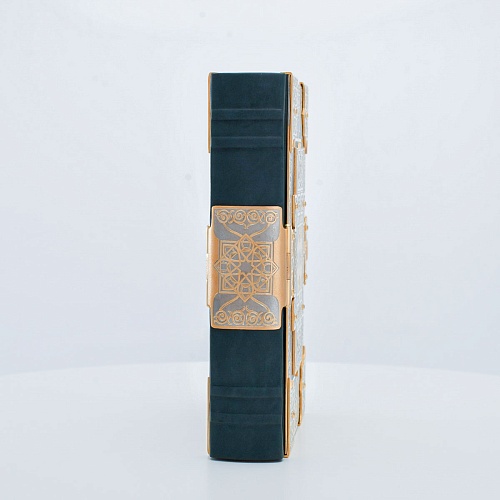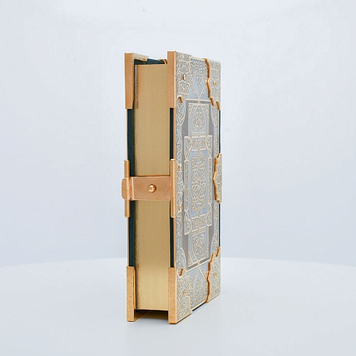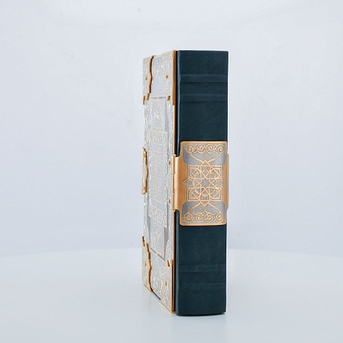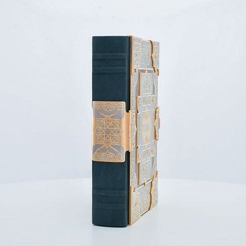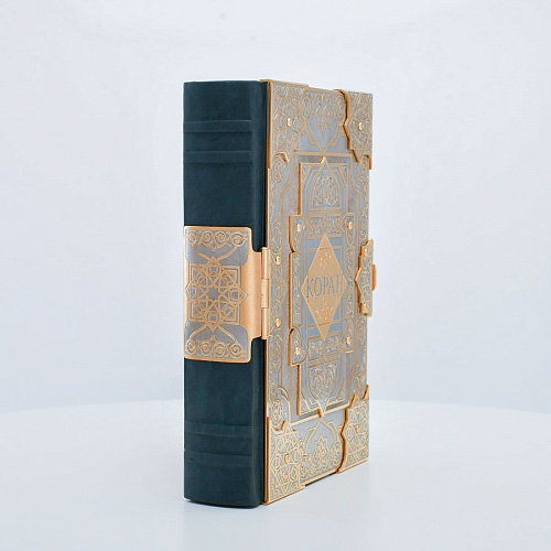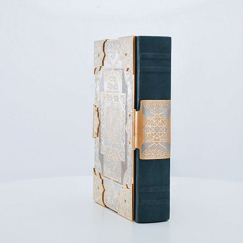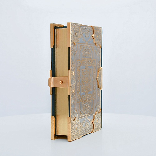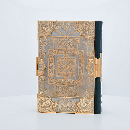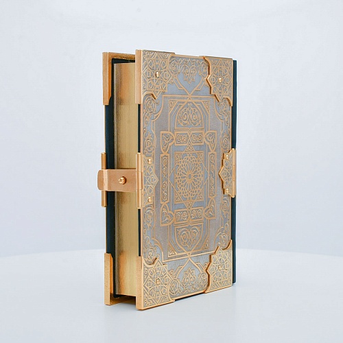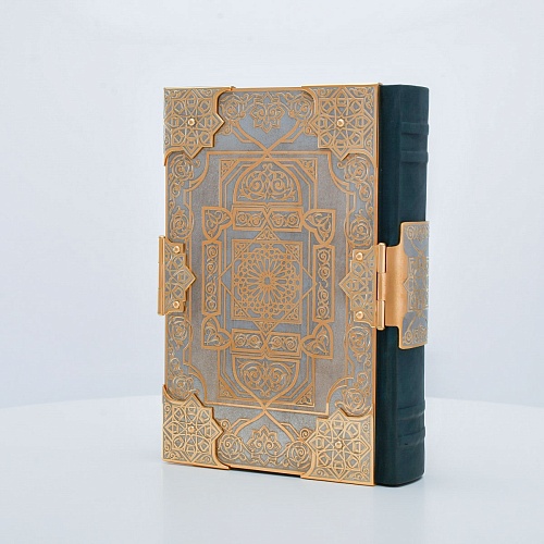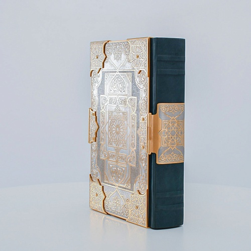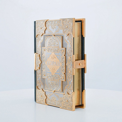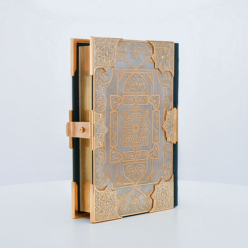 Книга – самый лучший подарок, особенно произведенная руками художников для последователей мусульманского вероисповедания. Оформление для Корана исполнено златоустовскими художниками в технике гравюры на поверхности долговечного металла. Оклад книги покрыт золотом высшей пробы, а тонкий, филигранный узор на обеих сторонах выполнен в восточных мотивах с арабской вязью.