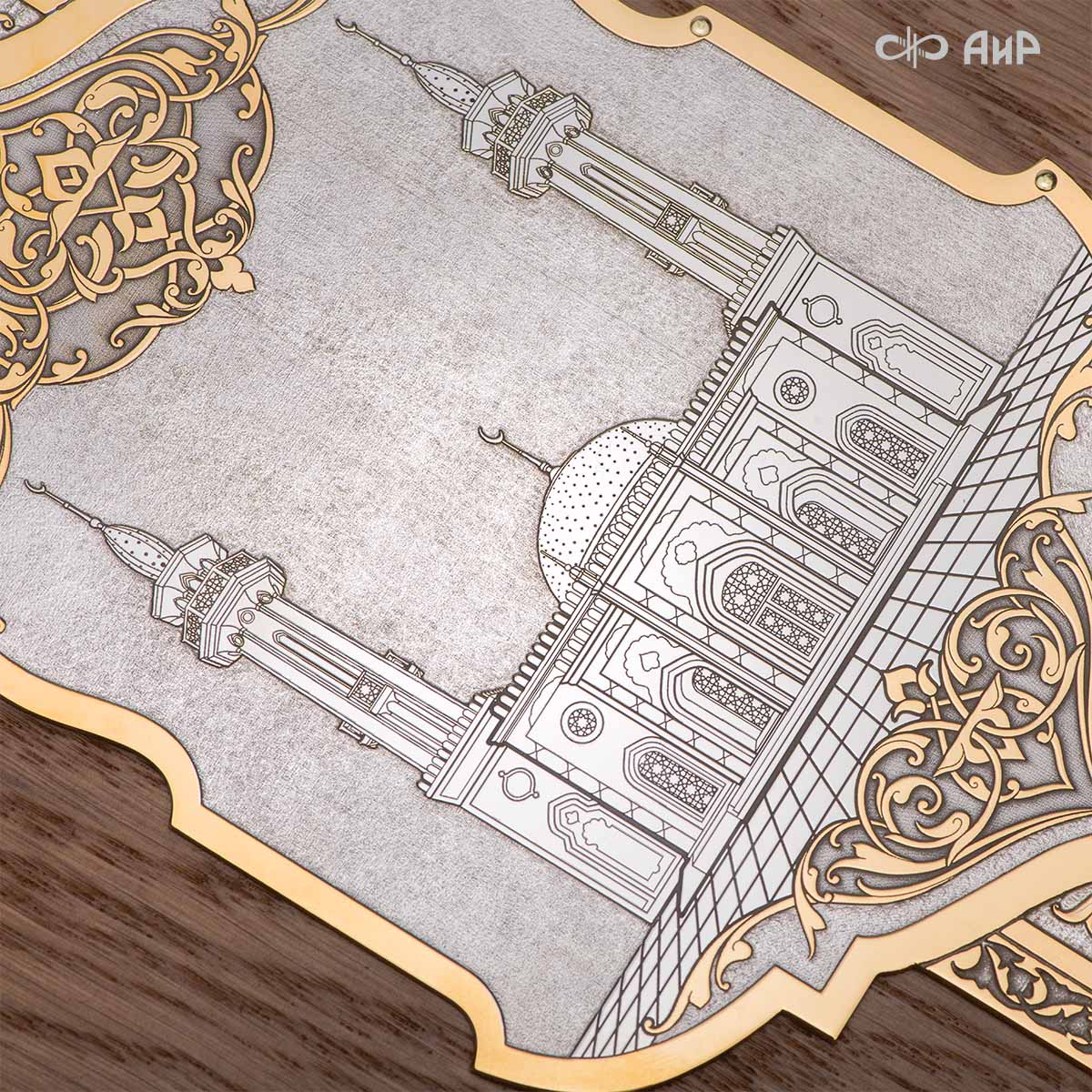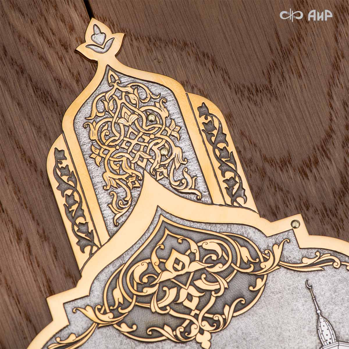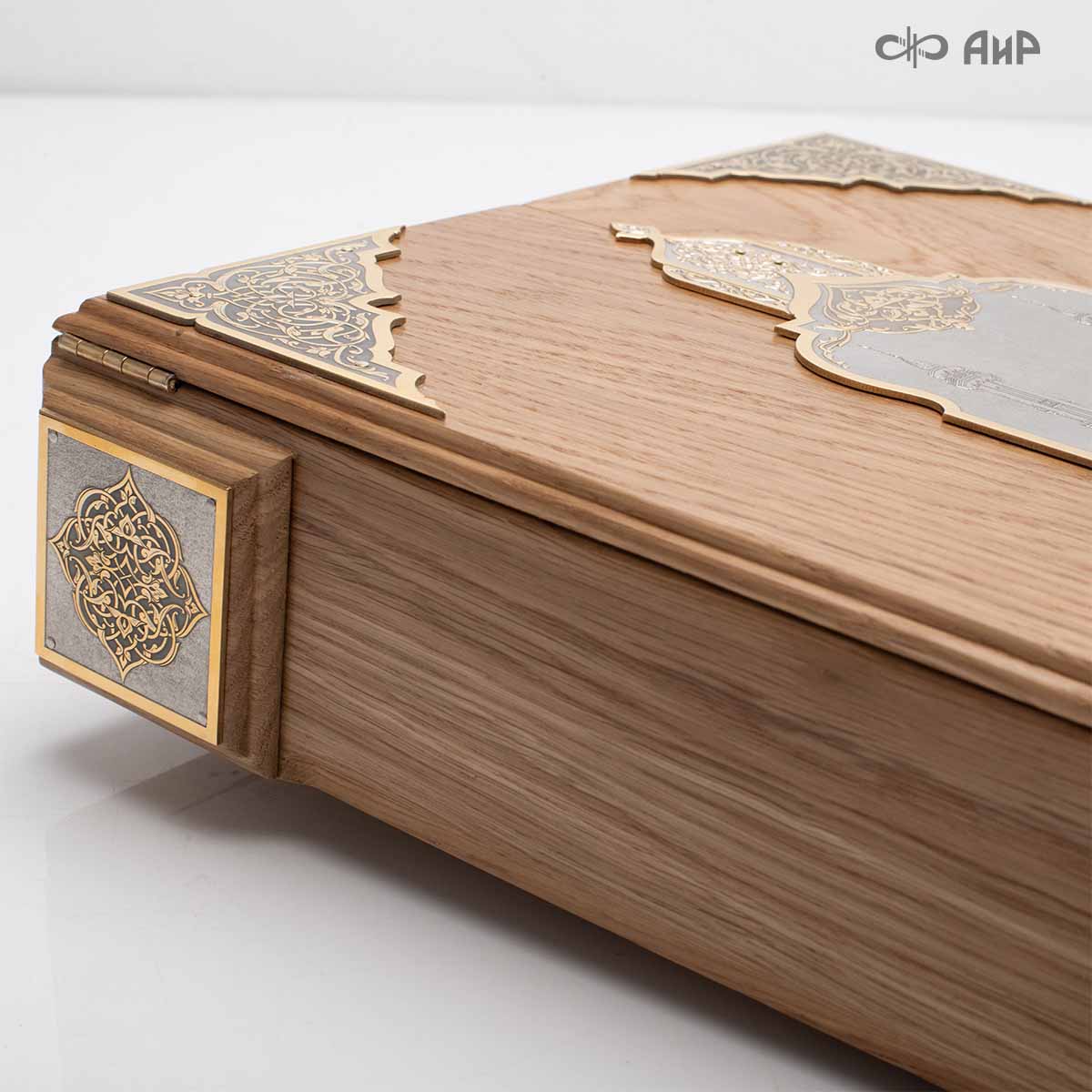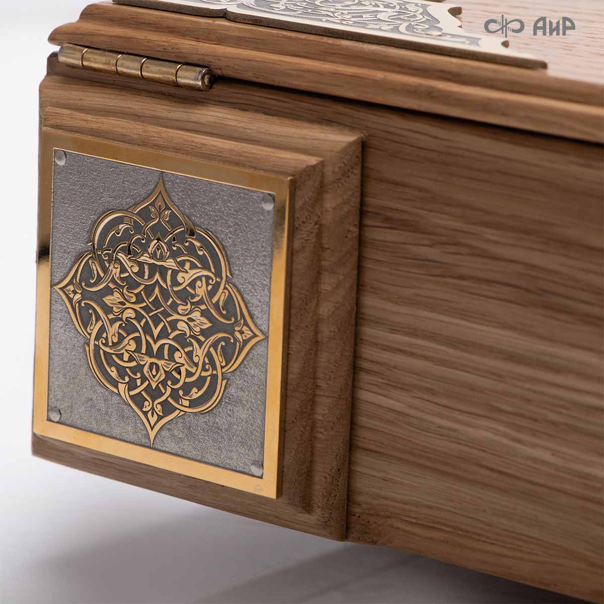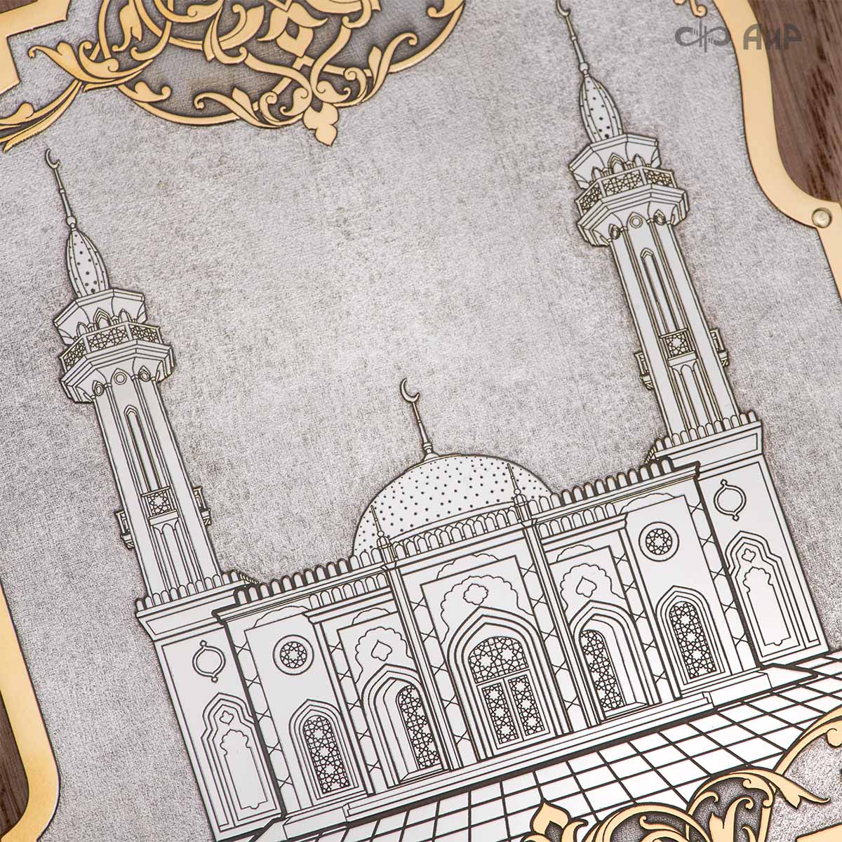 Книга – самый лучший подарок, особенно произведенная руками художников для последователей мусульманского вероисповедания. Оформление для Корана исполнено златоустовскими художниками в технике гравюры на поверхности долговечного металла. Оклад книги покрыт золотом высшей пробы, а тонкий, филигранный узор на обеих сторонах выполнен в восточных мотивах с арабской вязью.
