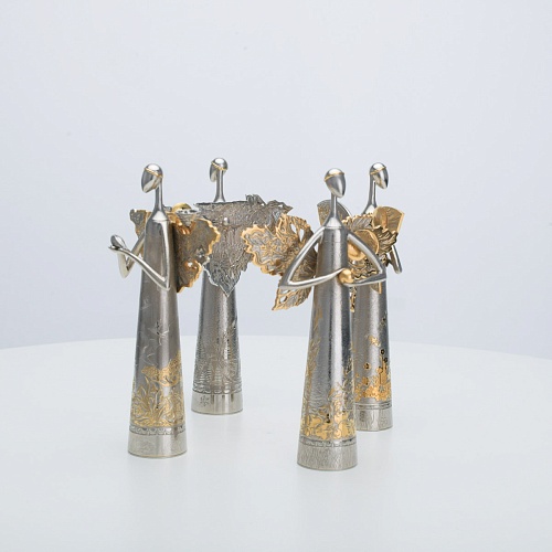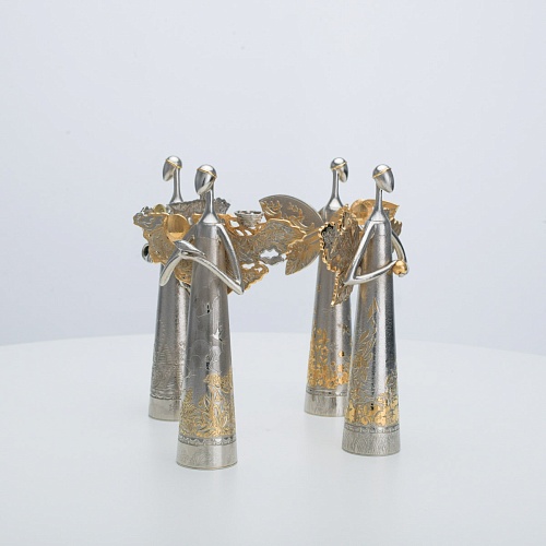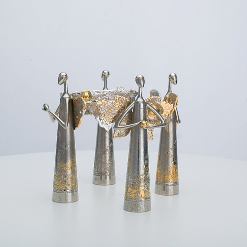 Сувенир «Ангел Весна» – это маленькое чудо, рожденное тонкой душой художника и сотворенное руками мастера-оружейника Компании «АиР». Филигранная работа видна во всем образе сувенира. Изящная фигурка Ангела одета в платье, украшенное подснежниками и ласточками, пташка доверчиво пригрелась на руках Ангела. Крылья Ангела выполнены в виде весенних грозовых туч, сквозь которые все сильнее светит солнце, перелетные птицы возвращаются домой, чтобы свить гнезда. Крылья «Ангела Весны» тонко проработаны, особую воздушность изделию придает просечка по металлу.