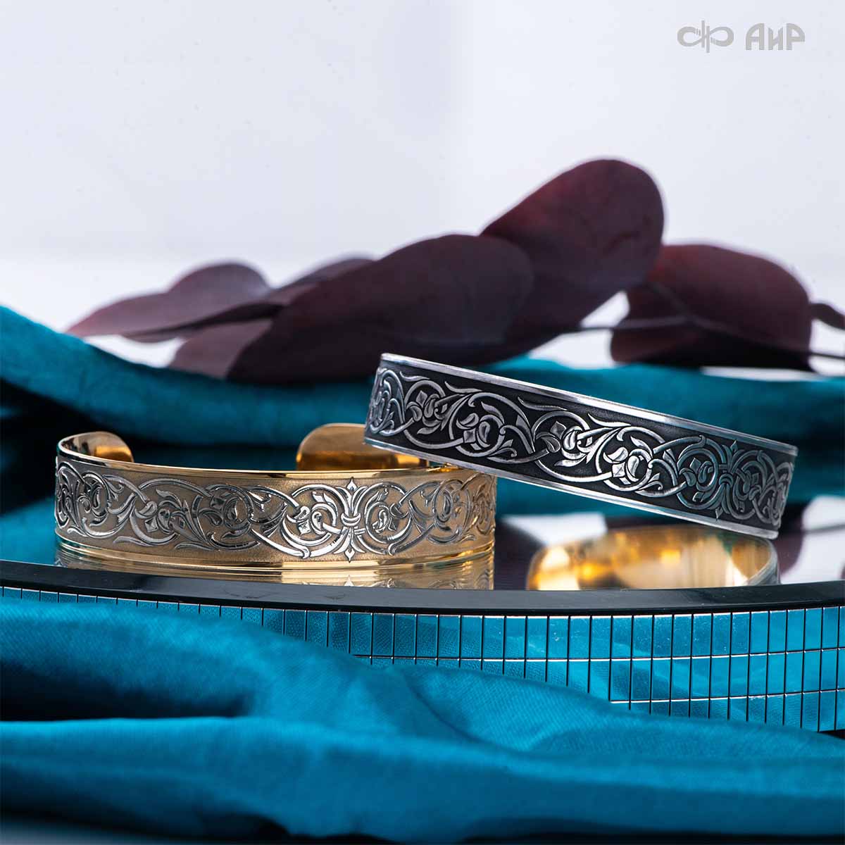 Цикличный растительный орнамент на тонком браслете символизирует цикличность жизни, череду новых воплощений.