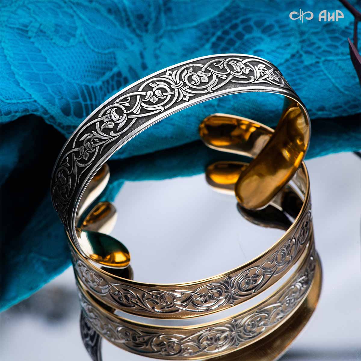 Цикличный растительный орнамент на тонком браслете символизирует цикличность жизни, череду новых воплощений.
